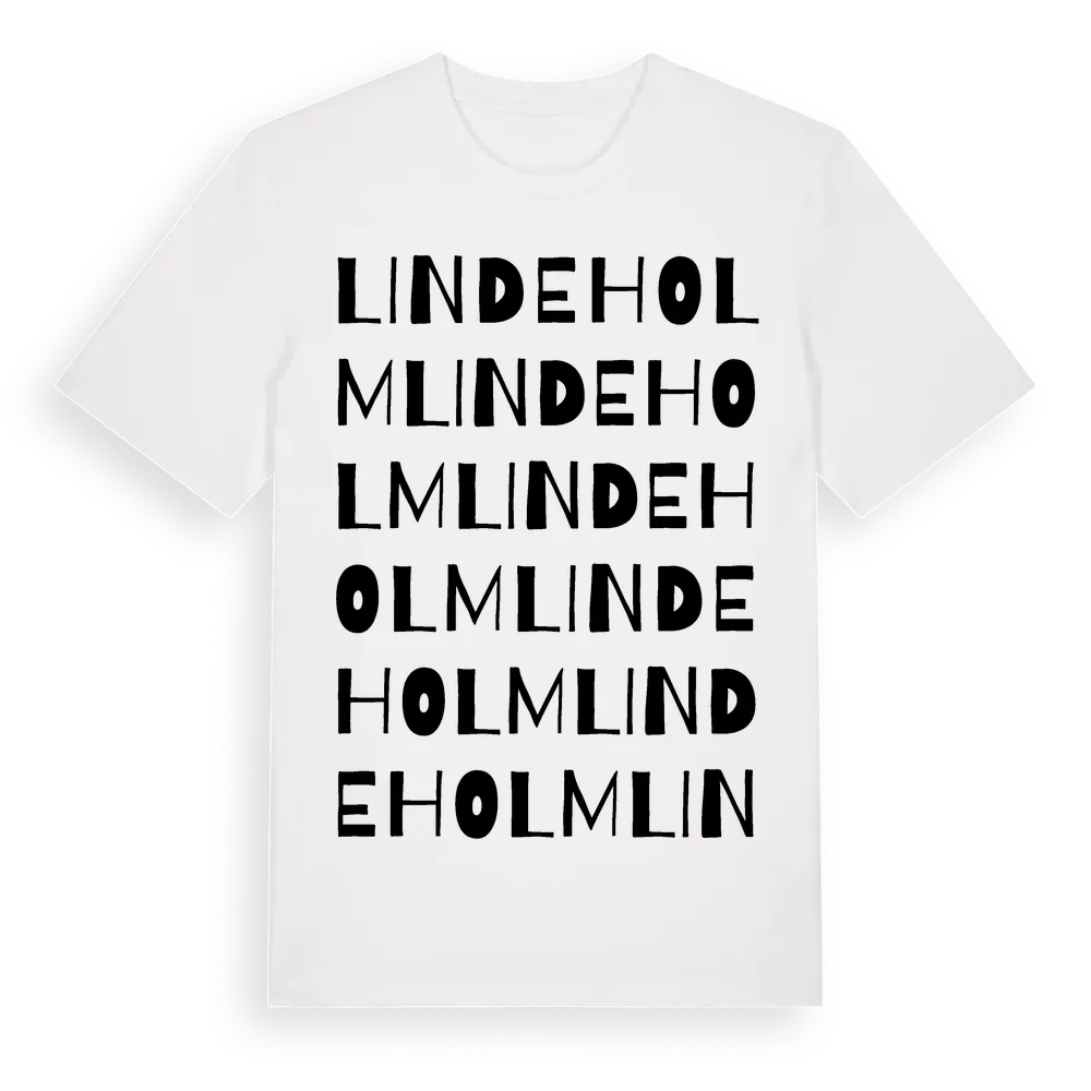 Lindeholm ordlek t-shirt är inspirerad av Lindeholm i Skåne län, Sverige. Tröjan är designad för dig som har en speciell koppling till platsen – oavsett om du bor här, har rötterna här eller bara älskar Lindeholm.