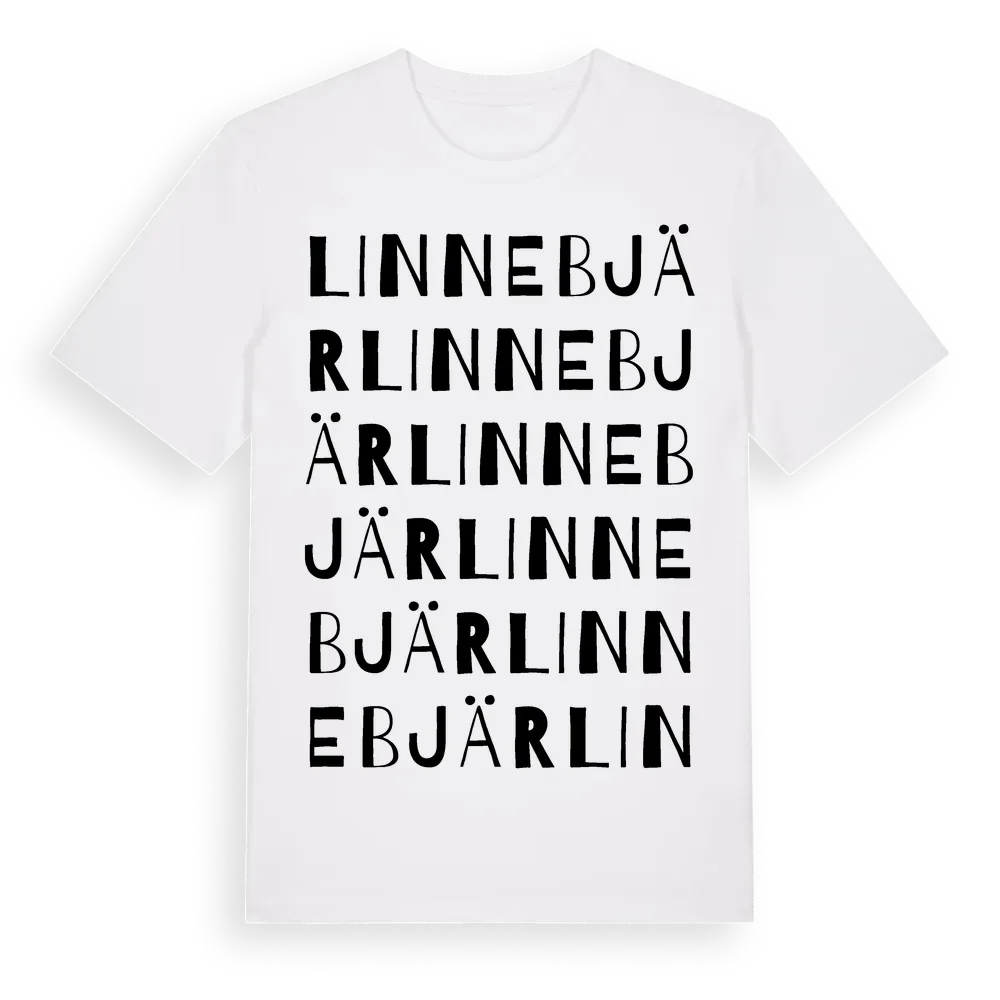 Linnebjär ordlek t-shirt är inspirerad av Linnebjär i Skåne län, Sverige. Tröjan är designad för dig som har en speciell koppling till platsen – oavsett om du bor här, har rötterna här eller bara älskar Linnebjär.