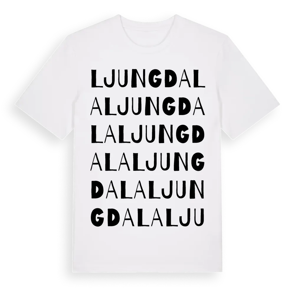 Ljungdala ordlek t-shirt är inspirerad av Ljungdala i Skåne län, Sverige. Tröjan är designad för dig som har en speciell koppling till platsen – oavsett om du bor här, har rötterna här eller bara älskar Ljungdala.