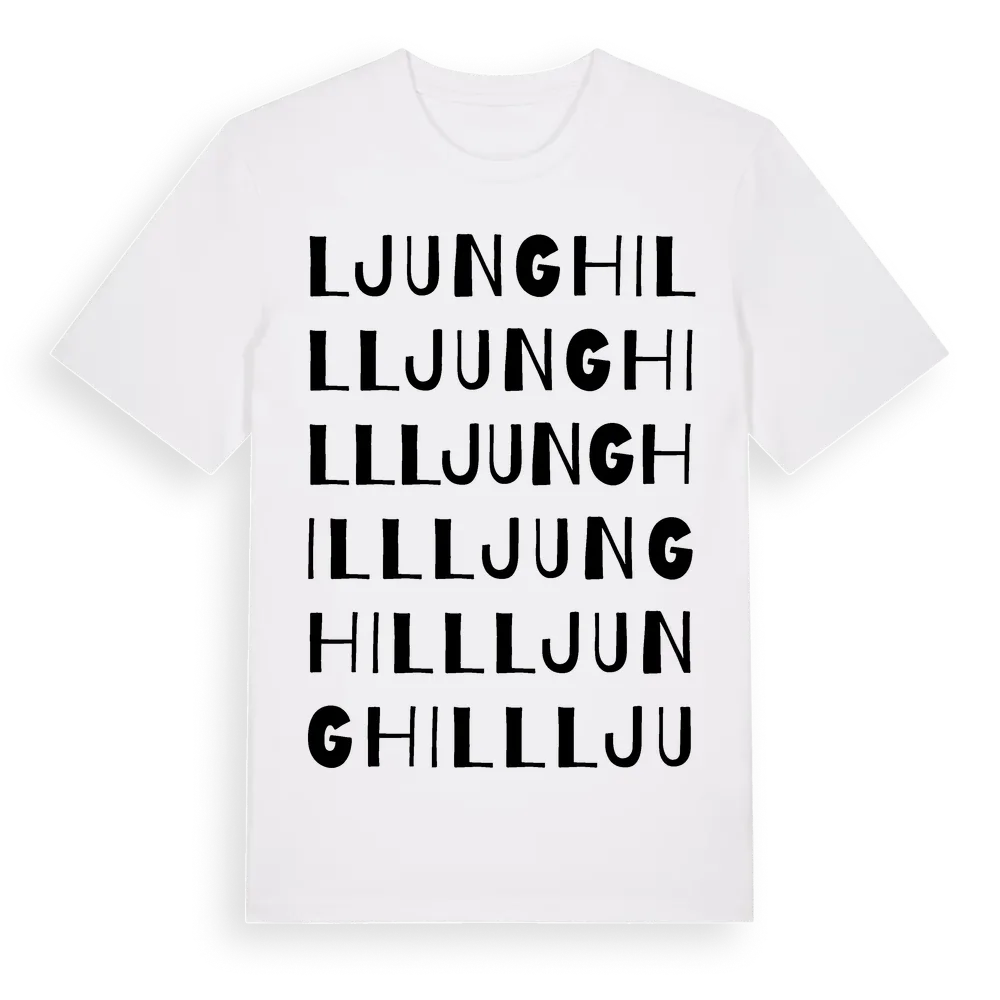 Ljunghill ordlek t-shirt är inspirerad av Ljunghill i Skåne län, Sverige. Tröjan är designad för dig som har en speciell koppling till platsen – oavsett om du bor här, har rötterna här eller bara älskar Ljunghill.