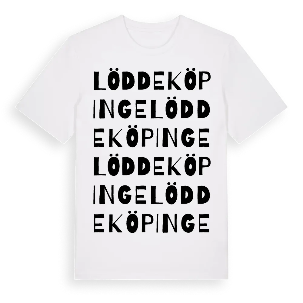 En ordlek byggd på Löddeköpinges namn. Subtilt och klurig – ett motiv som bara de som verkligen känner platsen fullt ut förstår. Premium bomull, unisex – från byn Löddeköpinge i Skåne län.
