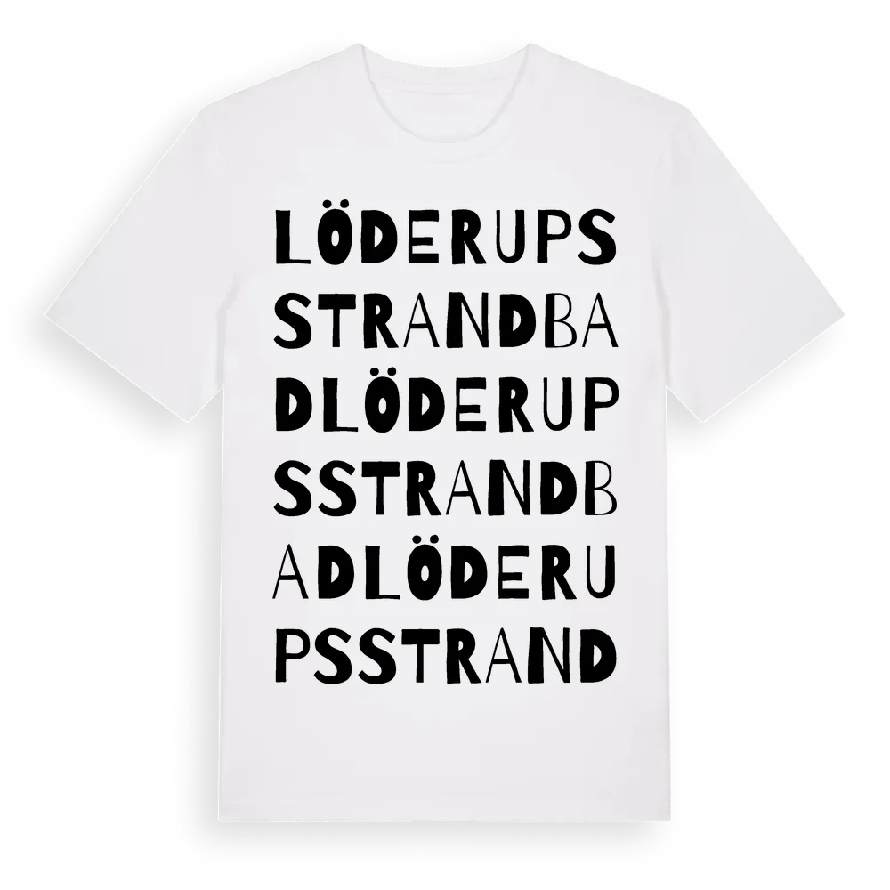 Löderups Strandbad ordlek t-shirt är inspirerad av byn Löderups Strandbad i Skåne län, Sverige. Tröjan är designad för dig som har en speciell koppling till platsen – oavsett om du bor här, har rötterna här eller bara älskar Löderups Strandbad.