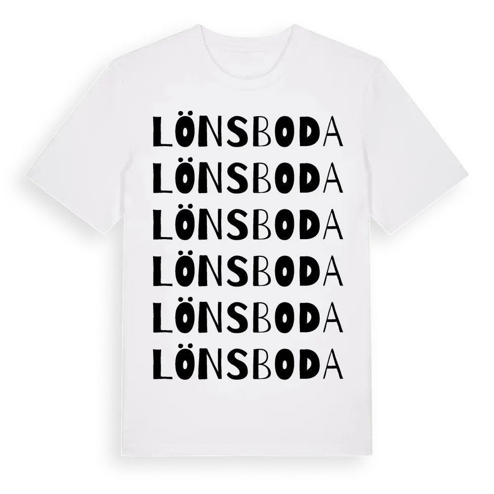 Lönsboda ordlek t-shirt är inspirerad av staden Lönsboda i Skåne län, Sverige. Tröjan är designad för dig som har en speciell koppling till platsen – oavsett om du bor här, har rötterna här eller bara älskar Lönsboda.