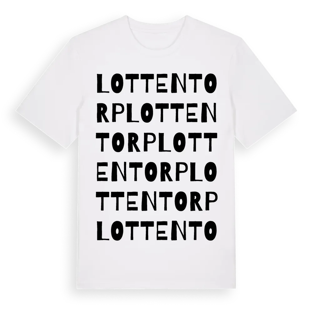 Lottentorp ordlek t-shirt är inspirerad av Lottentorp i Skåne län, Sverige. Tröjan är designad för dig som har en speciell koppling till platsen – oavsett om du bor här, har rötterna här eller bara älskar Lottentorp.