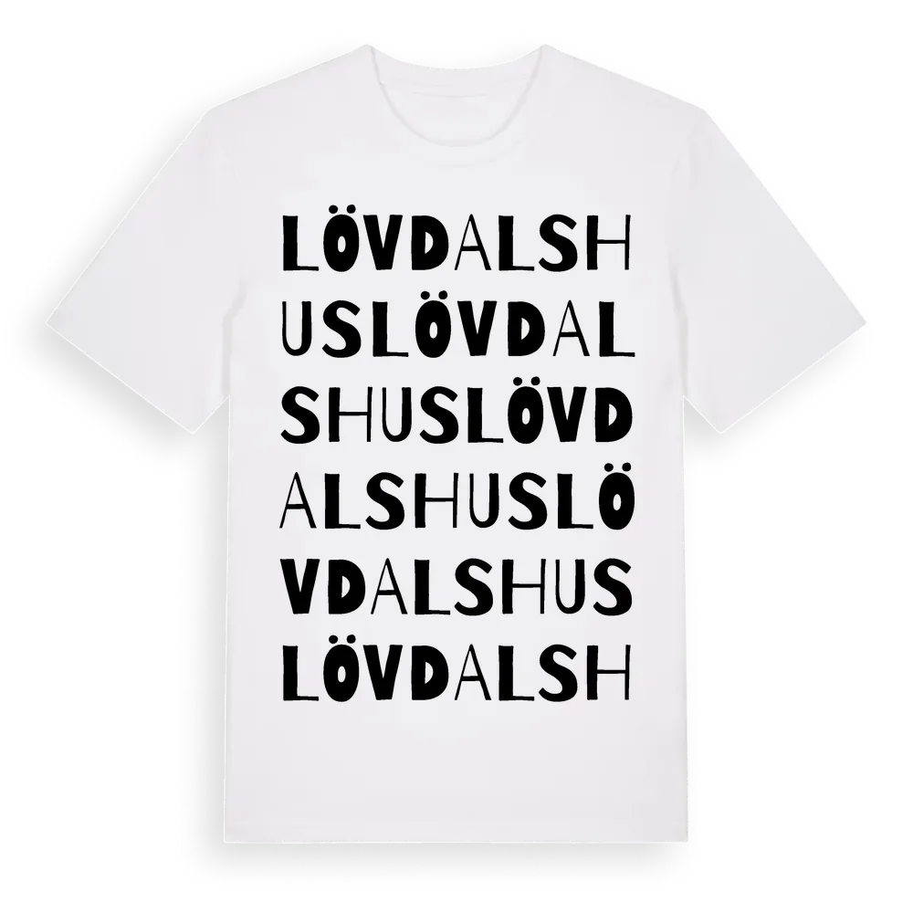 Lövdalshus ordlek t-shirt är inspirerad av Lövdalshus i Skåne län, Sverige. Tröjan är designad för dig som har en speciell koppling till platsen – oavsett om du bor här, har rötterna här eller bara älskar Lövdalshus.