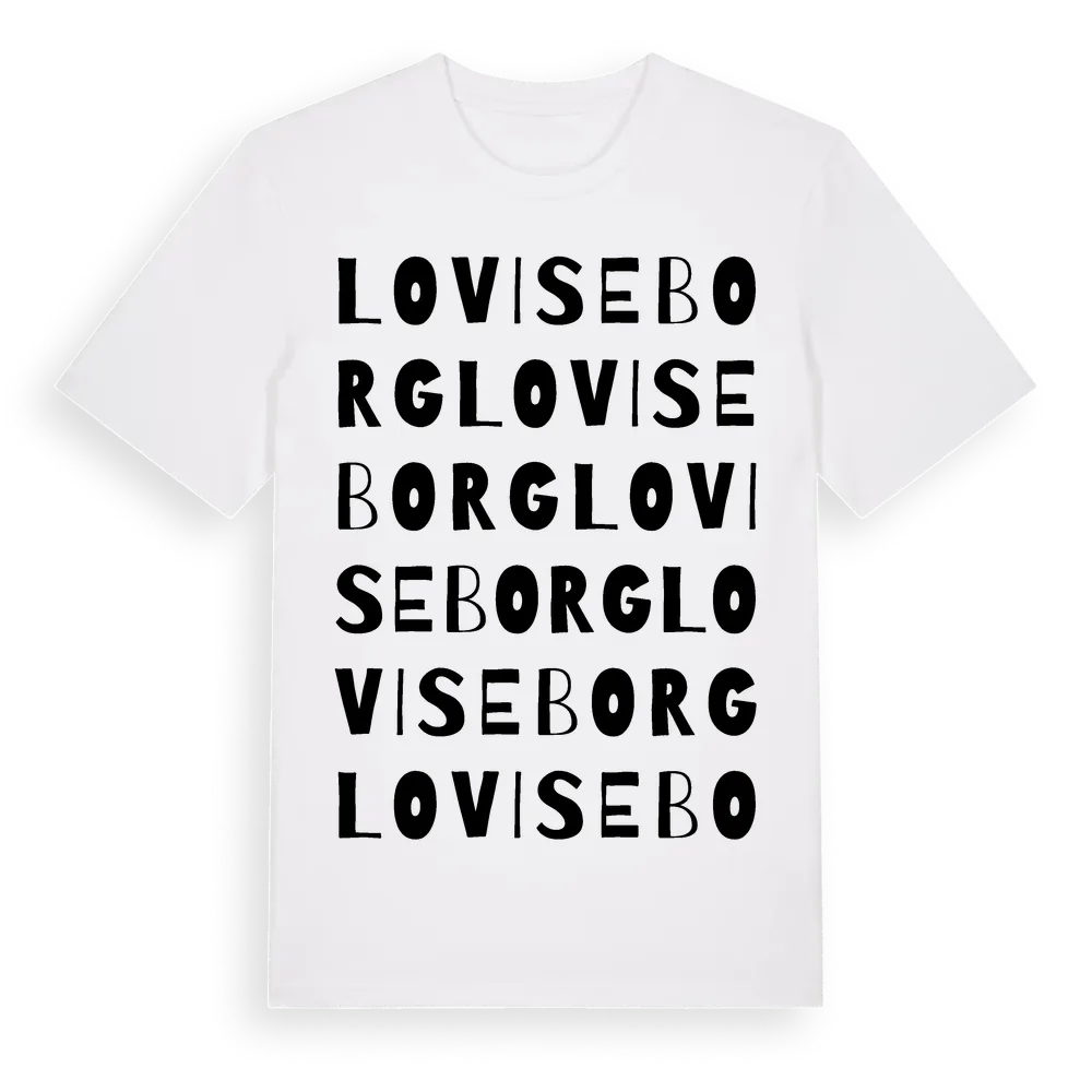 Loviseborg ordlek t-shirt är inspirerad av Loviseborg i Skåne län, Sverige. Tröjan är designad för dig som har en speciell koppling till platsen – oavsett om du bor här, har rötterna här eller bara älskar Loviseborg.