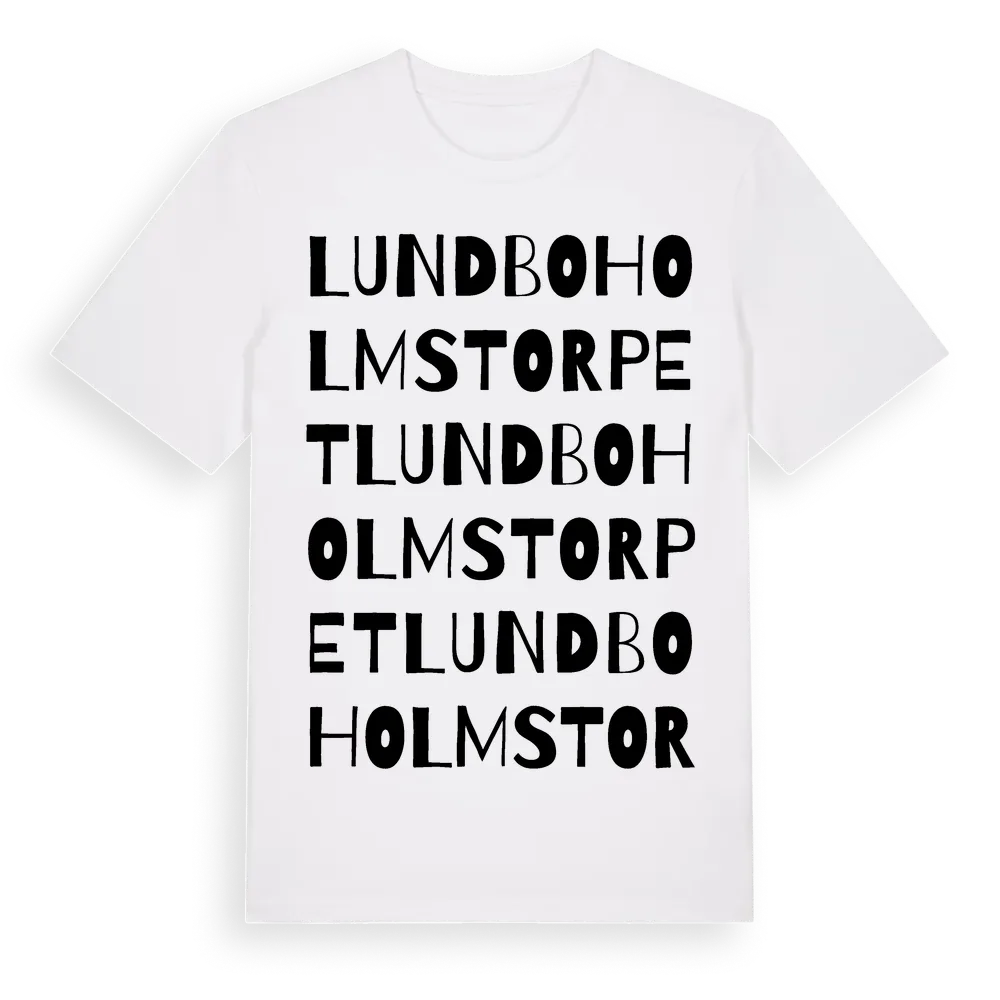 Lundboholmstorpet ordlek t-shirt är inspirerad av Lundboholmstorpet i Skåne län, Sverige. Tröjan är designad för dig som har en speciell koppling till platsen – oavsett om du bor här, har rötterna här eller bara älskar Lundboholmstorpet.