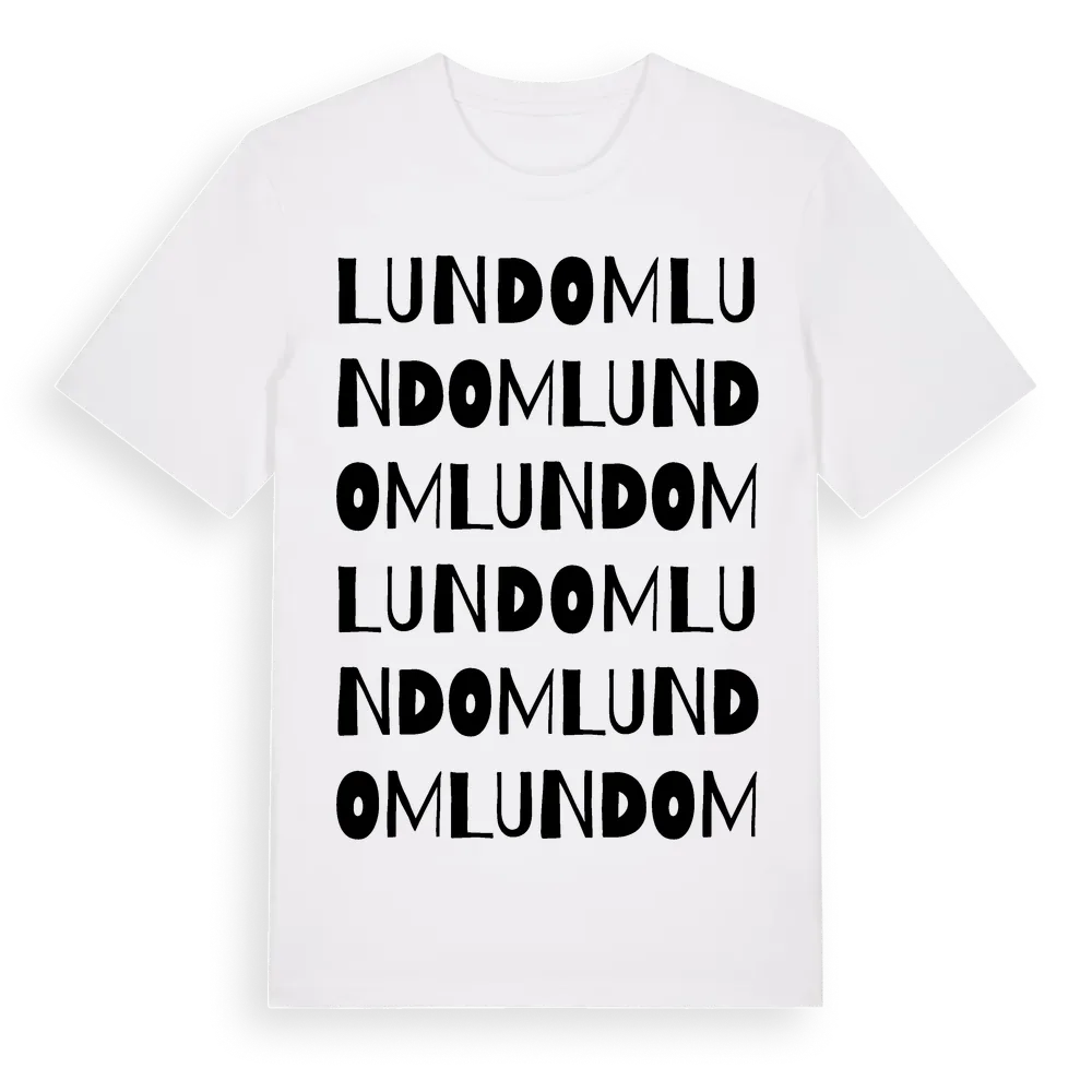 Lundom ordlek t-shirt är inspirerad av byn Lundom i Skåne län, Sverige. Tröjan är designad för dig som har en speciell koppling till platsen – oavsett om du bor här, har rötterna här eller bara älskar Lundom.
