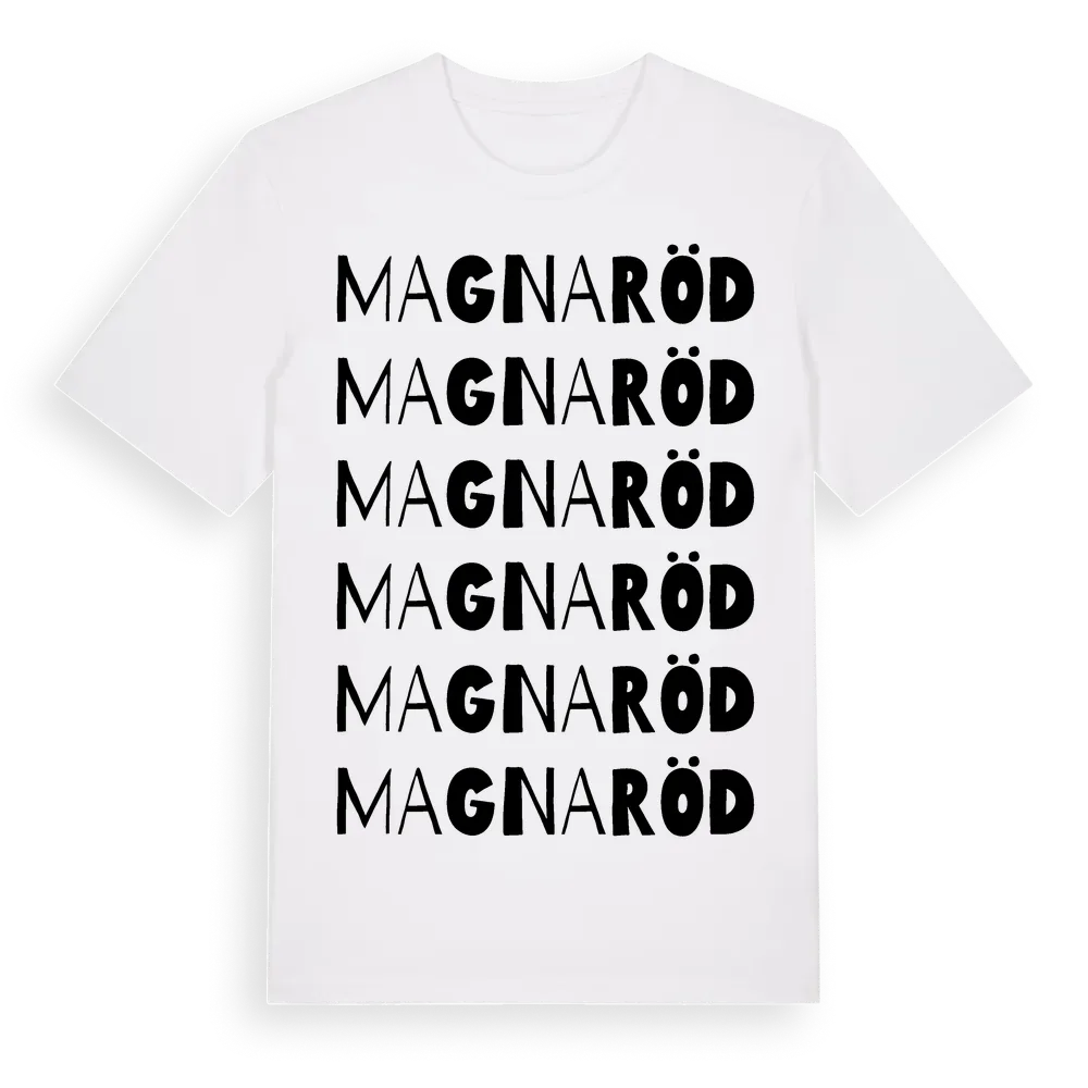 Magnaröd ordlek t-shirt är inspirerad av byn Magnaröd i Skåne län, Sverige. Tröjan är designad för dig som har en speciell koppling till platsen – oavsett om du bor här, har rötterna här eller bara älskar Magnaröd.