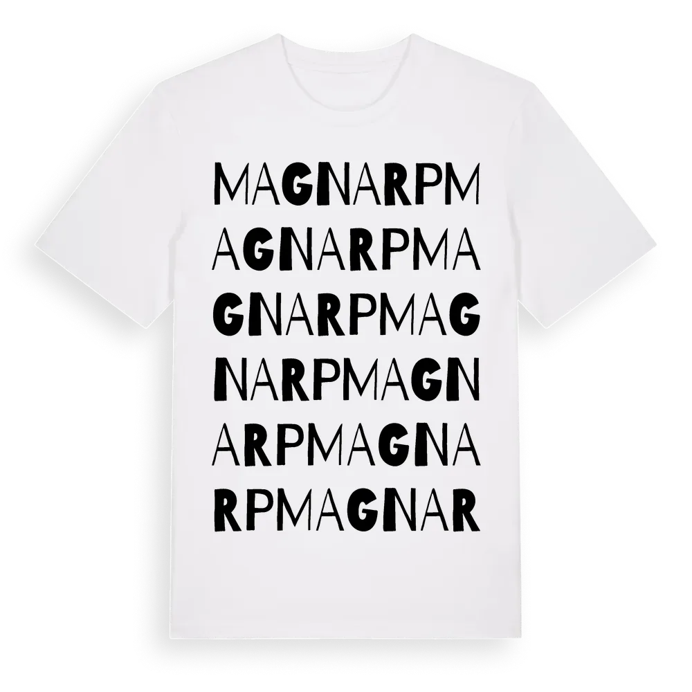 Magnarp ordlek t-shirt är inspirerad av byn Magnarp i Skåne län, Sverige. Tröjan är designad för dig som har en speciell koppling till platsen – oavsett om du bor här, har rötterna här eller bara älskar Magnarp.