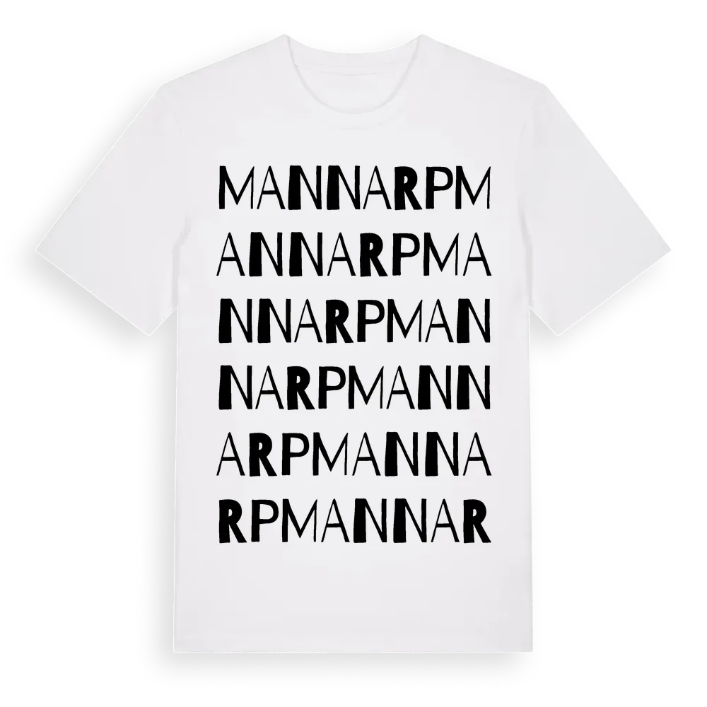 Mannarp ordlek t-shirt är inspirerad av byn Mannarp i Skåne län, Sverige. Tröjan är designad för dig som har en speciell koppling till platsen – oavsett om du bor här, har rötterna här eller bara älskar Mannarp.