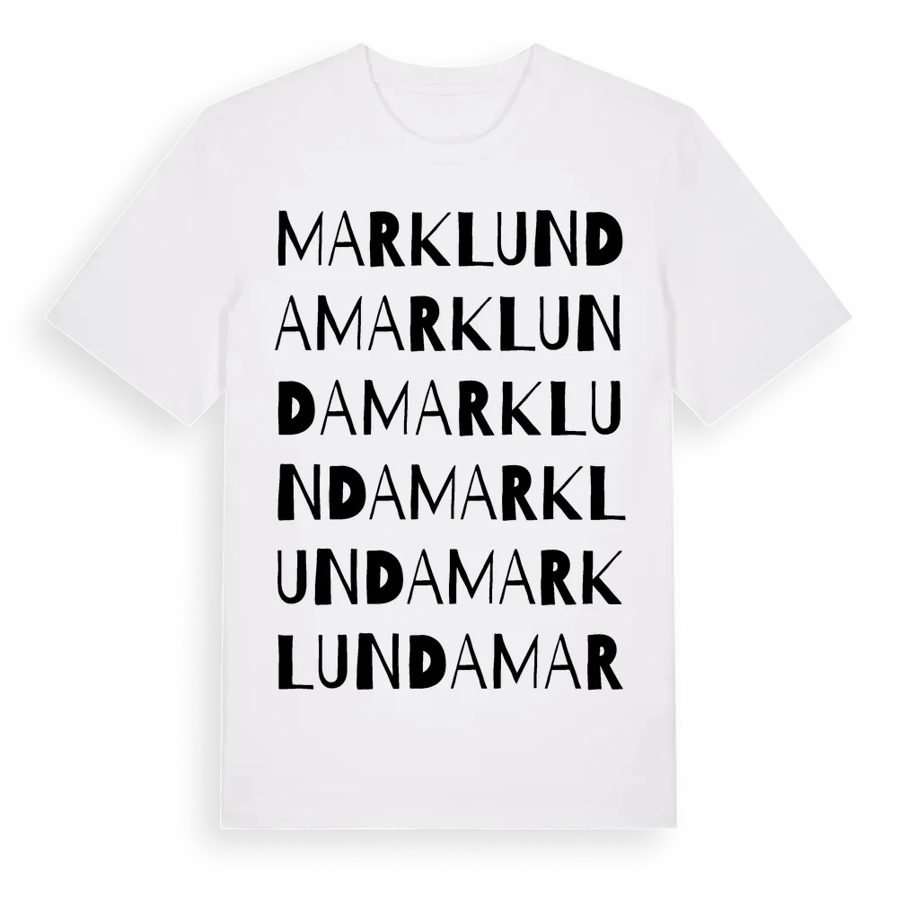 Marklunda ordlek t-shirt är inspirerad av byn Marklunda i Skåne län, Sverige. Tröjan är designad för dig som har en speciell koppling till platsen – oavsett om du bor här, har rötterna här eller bara älskar Marklunda.