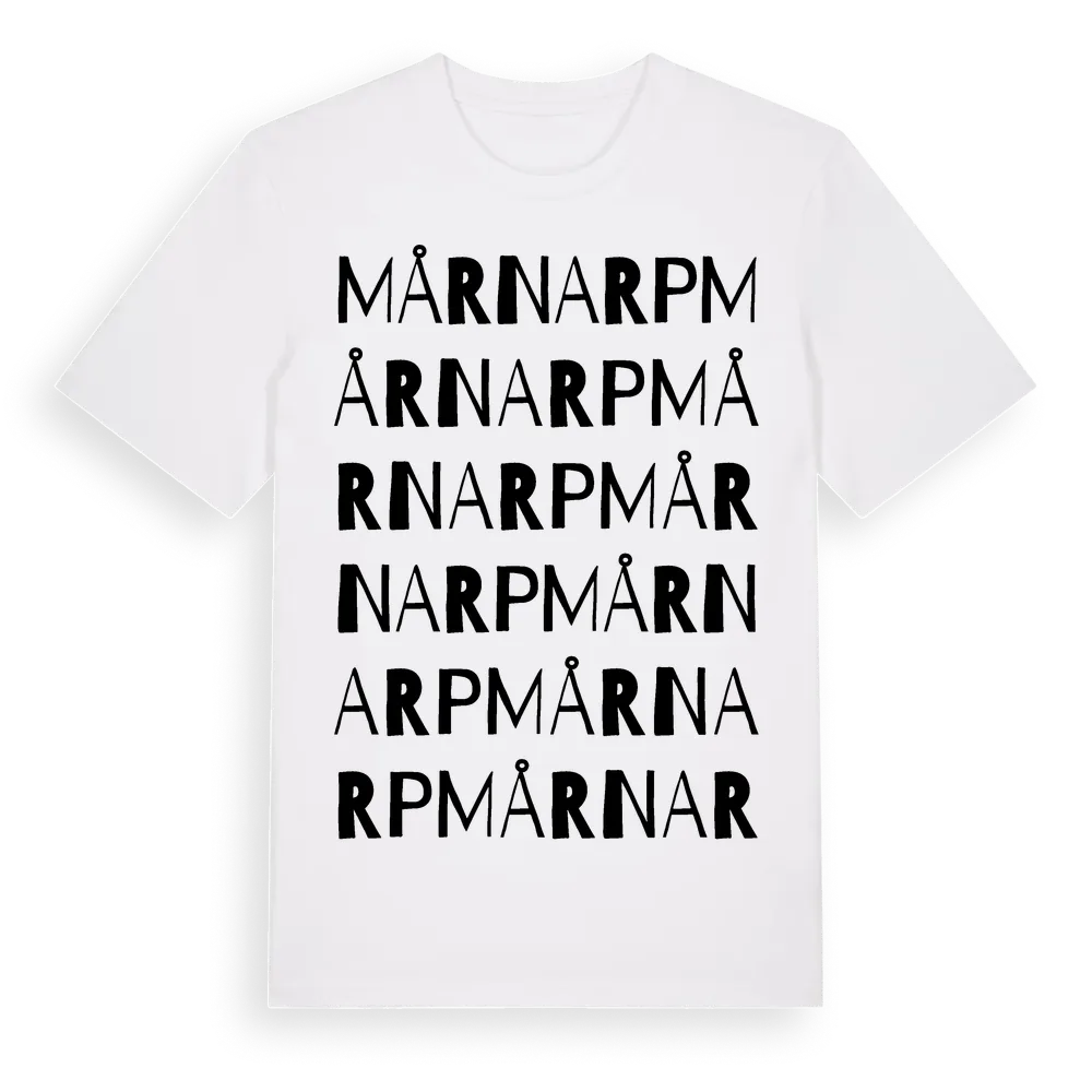 Mårnarp ordlek t-shirt är inspirerad av byn Mårnarp i Skåne län, Sverige. Tröjan är designad för dig som har en speciell koppling till platsen – oavsett om du bor här, har rötterna här eller bara älskar Mårnarp.