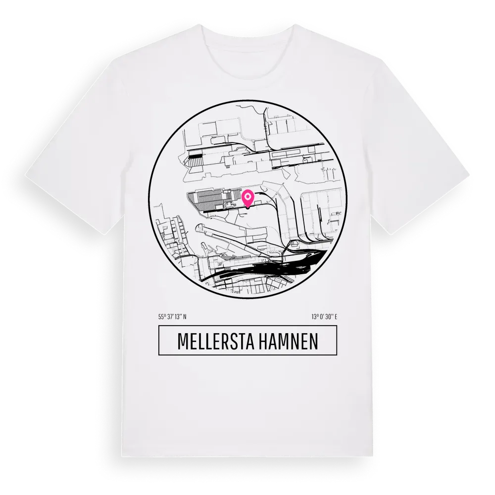 Mellersta Hamnen t-shirt är inspirerad av Mellersta Hamnen i Skåne län, Sverige. Tröjan är designad för dig som har en speciell koppling till platsen – oavsett om du bor här, har rötterna här eller bara älskar Mellersta Hamnen.