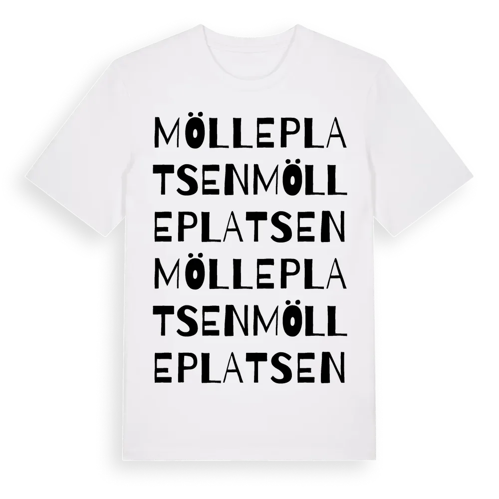 Mölleplatsen ordlek t-shirt är inspirerad av Mölleplatsen i Skåne län, Sverige. Tröjan är designad för dig som har en speciell koppling till platsen – oavsett om du bor här, har rötterna här eller bara älskar Mölleplatsen.