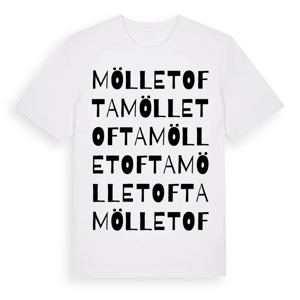 En ordlek byggd på Mölletoftas namn. Subtilt och klurig – ett motiv som bara de som verkligen känner platsen fullt ut förstår. Premium bomull, unisex – från Mölletofta i Skåne län.