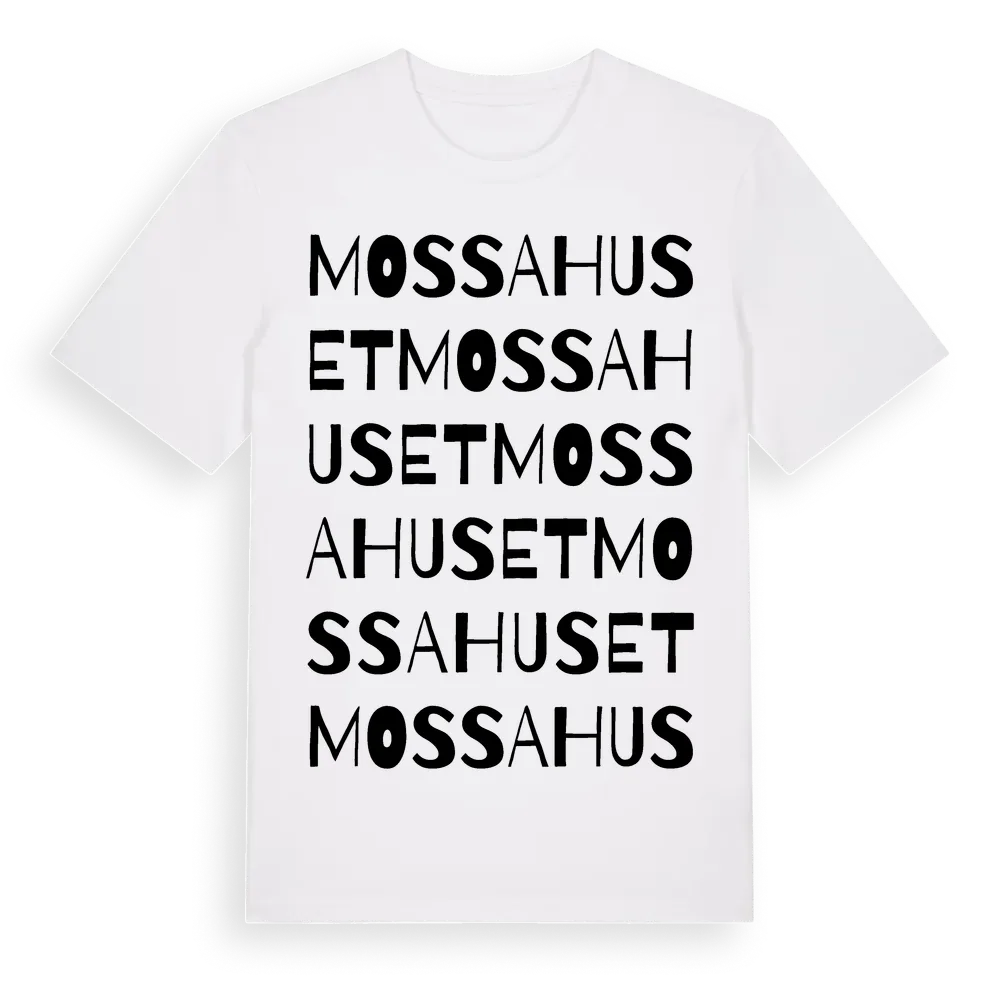Mossahuset ordlek t-shirt är inspirerad av Mossahuset i Skåne län, Sverige. Tröjan är designad för dig som har en speciell koppling till platsen – oavsett om du bor här, har rötterna här eller bara älskar Mossahuset.