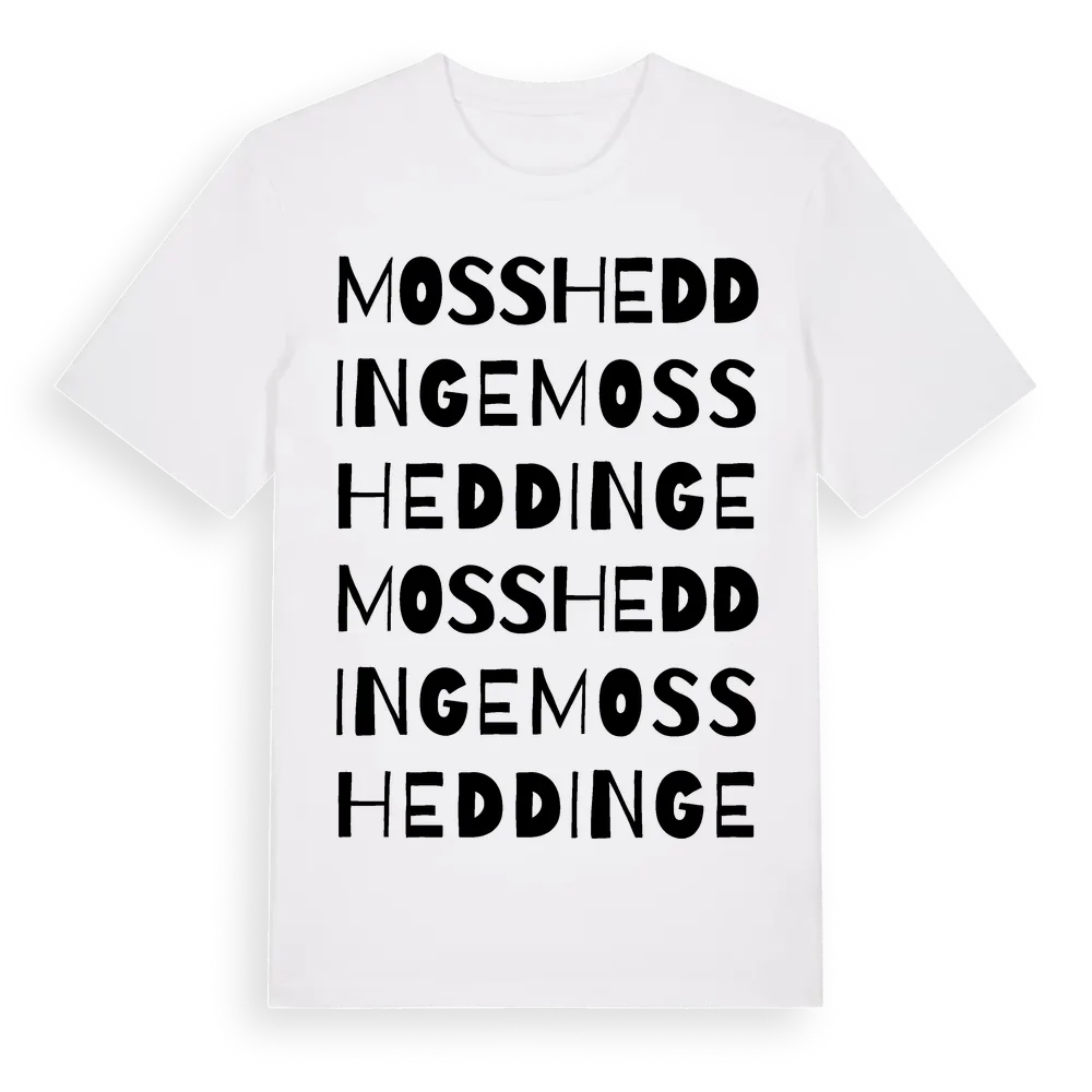 Mossheddinge ordlek t-shirt är inspirerad av Mossheddinge i Skåne län, Sverige. Tröjan är designad för dig som har en speciell koppling till platsen – oavsett om du bor här, har rötterna här eller bara älskar Mossheddinge.