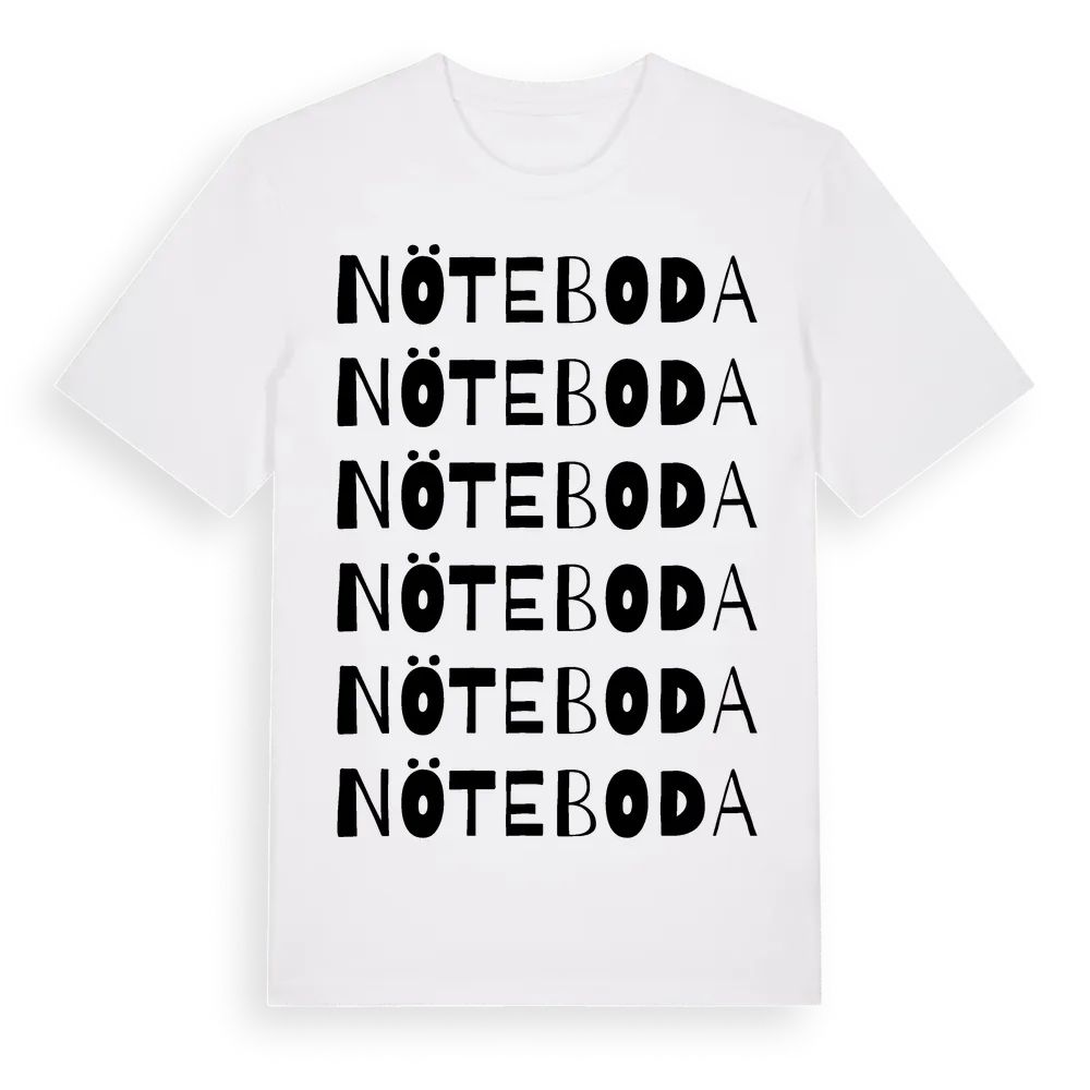 Nöteboda ordlek t-shirt är inspirerad av byn Nöteboda i Skåne län, Sverige. Tröjan är designad för dig som har en speciell koppling till platsen – oavsett om du bor här, har rötterna här eller bara älskar Nöteboda.
