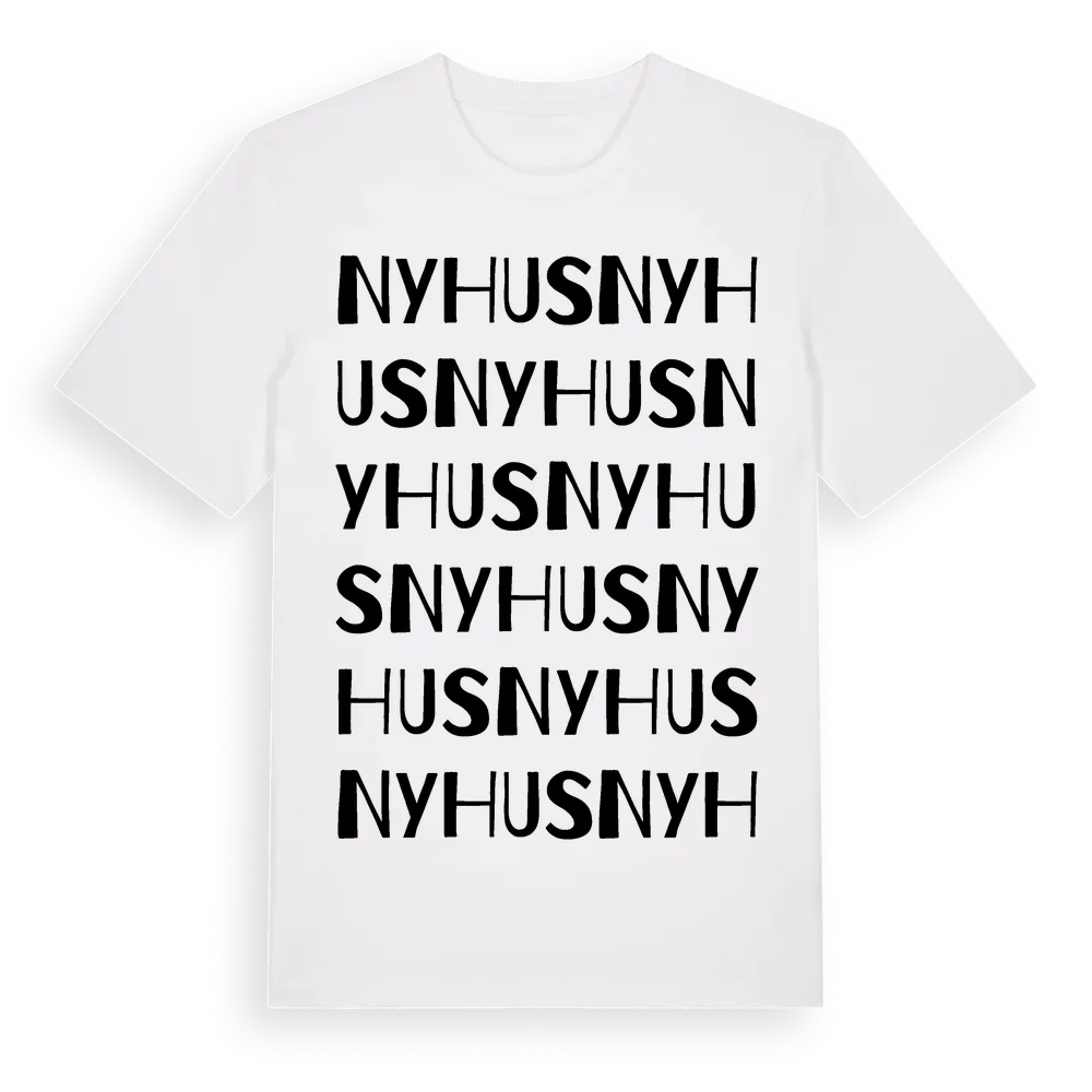 En ordlek byggd på Nyhuss namn. Subtilt och klurig – ett motiv som bara de som verkligen känner platsen fullt ut förstår. Premium bomull, unisex – från Nyhus i Skåne län.