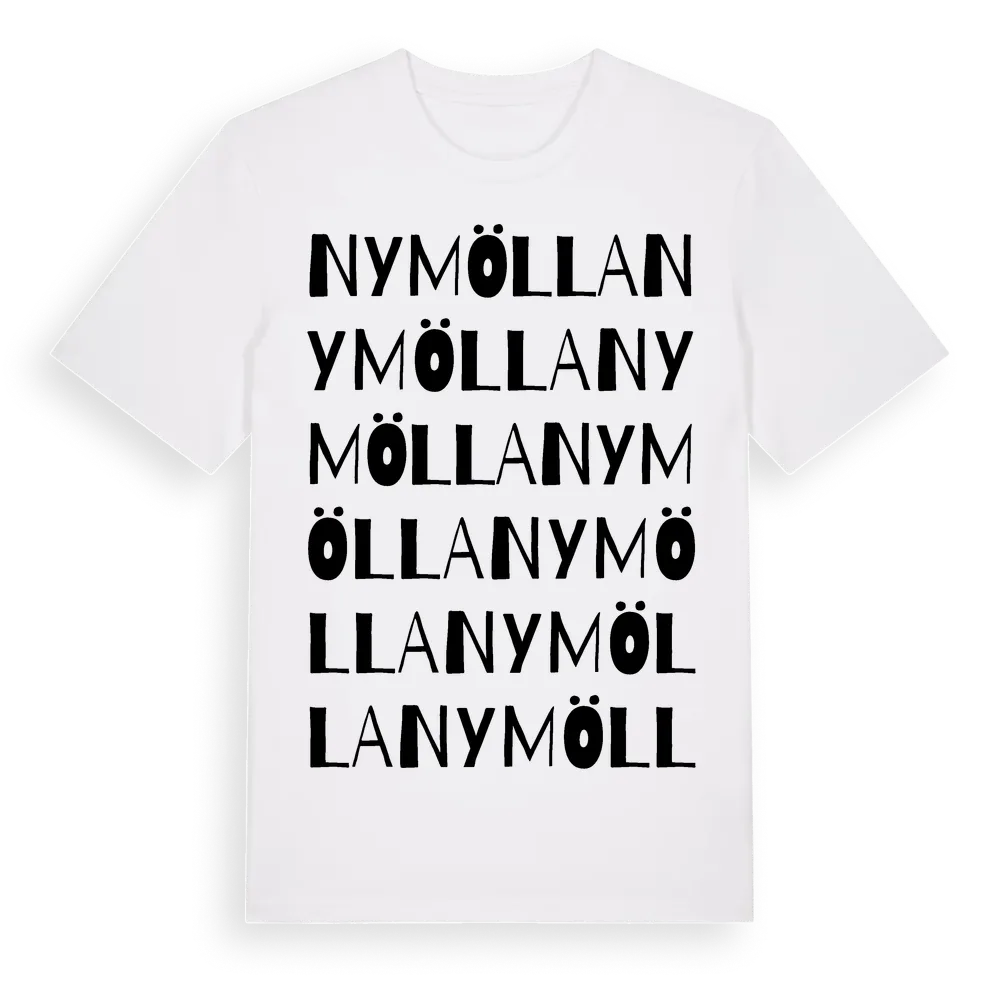 Nymölla ordlek t-shirt är inspirerad av Nymölla i Skåne län, Sverige. Tröjan är designad för dig som har en speciell koppling till platsen – oavsett om du bor här, har rötterna här eller bara älskar Nymölla.