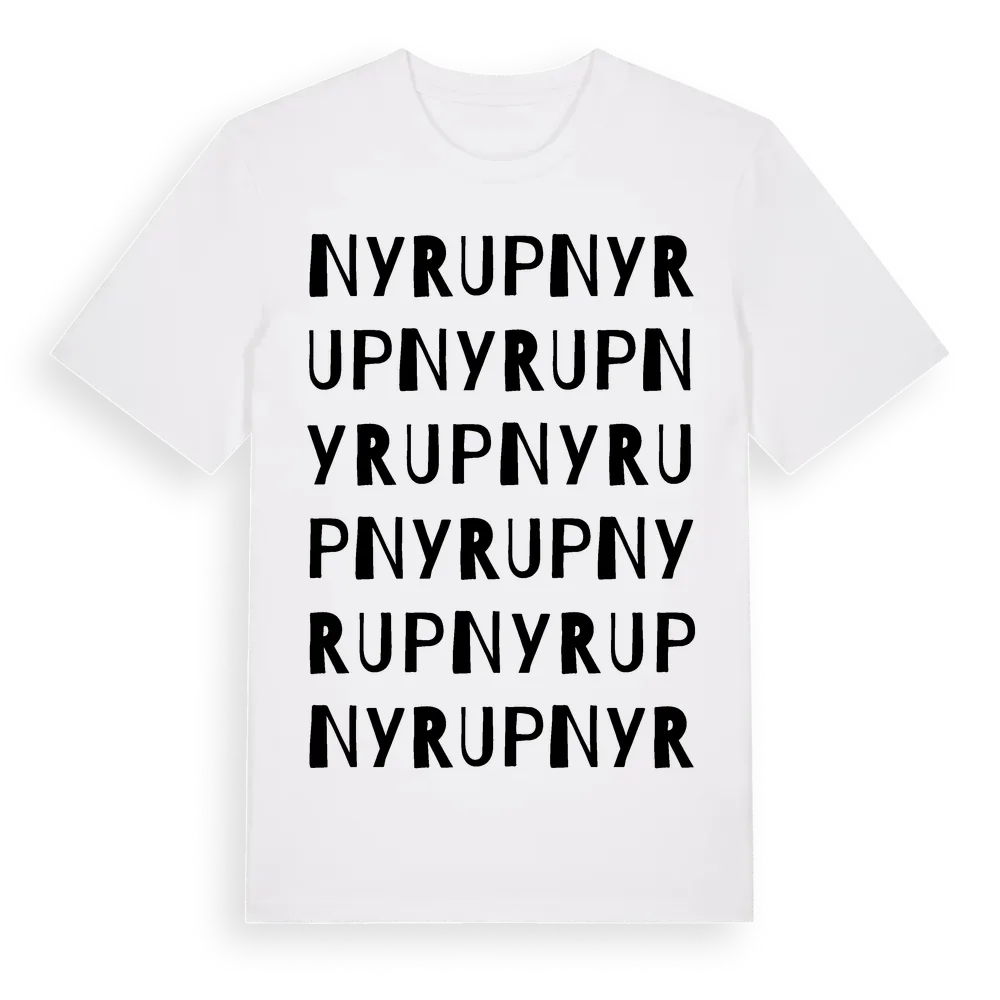 Nyrup ordlek t-shirt är inspirerad av byn Nyrup i Skåne län, Sverige. Tröjan är designad för dig som har en speciell koppling till platsen – oavsett om du bor här, har rötterna här eller bara älskar Nyrup.