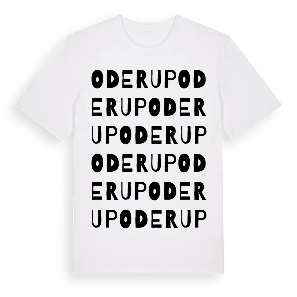 Oderup ordlek t-shirt är inspirerad av byn Oderup i Skåne län, Sverige. Tröjan är designad för dig som har en speciell koppling till platsen – oavsett om du bor här, har rötterna här eller bara älskar Oderup.