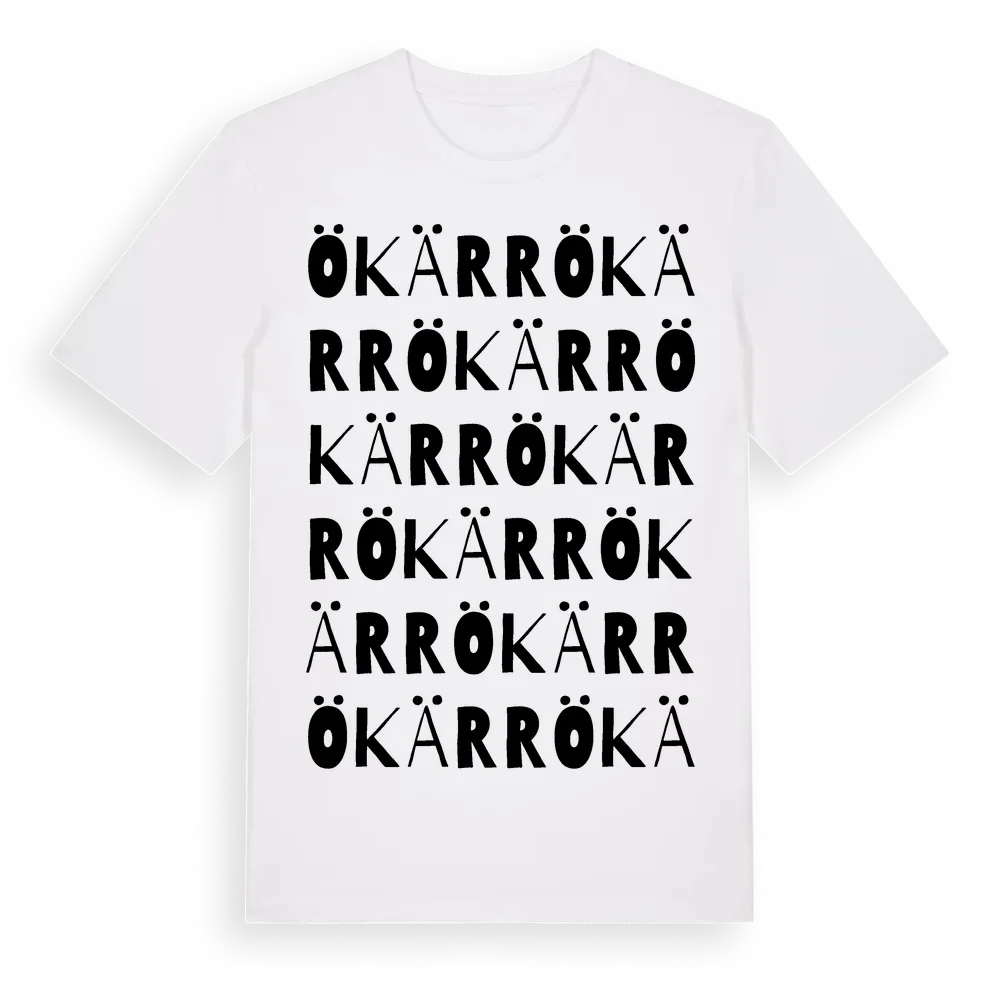 Ökärr ordlek t-shirt är inspirerad av Ökärr i Skåne län, Sverige. Tröjan är designad för dig som har en speciell koppling till platsen – oavsett om du bor här, har rötterna här eller bara älskar Ökärr.