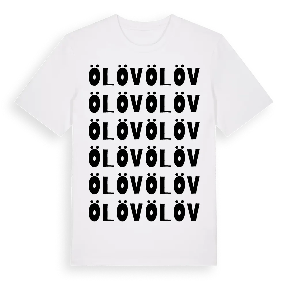En ordlek byggd på Ölövs namn. Subtilt och klurig – ett motiv som bara de som verkligen känner platsen fullt ut förstår. Premium bomull, unisex – från byn Ölöv i Skåne län.