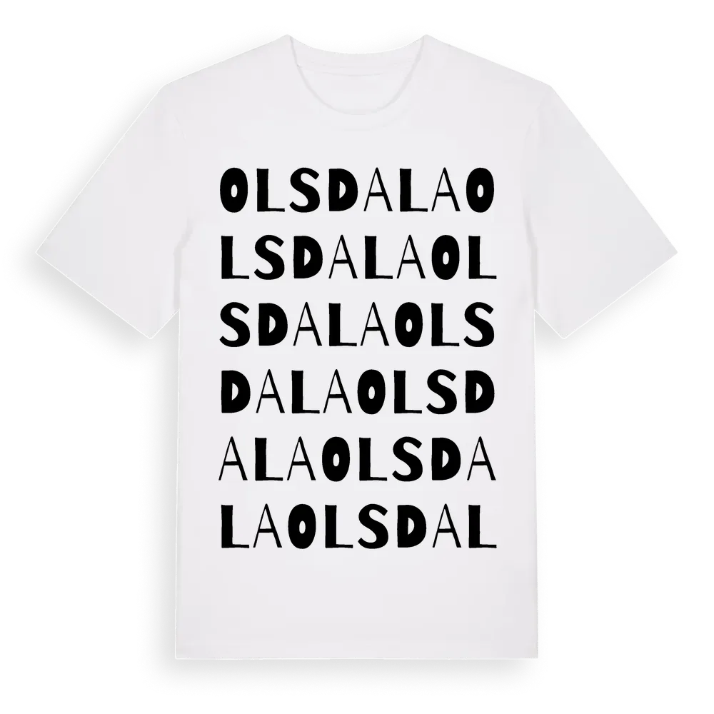 Olsdala ordlek t-shirt är inspirerad av Olsdala i Skåne län, Sverige. Tröjan är designad för dig som har en speciell koppling till platsen – oavsett om du bor här, har rötterna här eller bara älskar Olsdala.