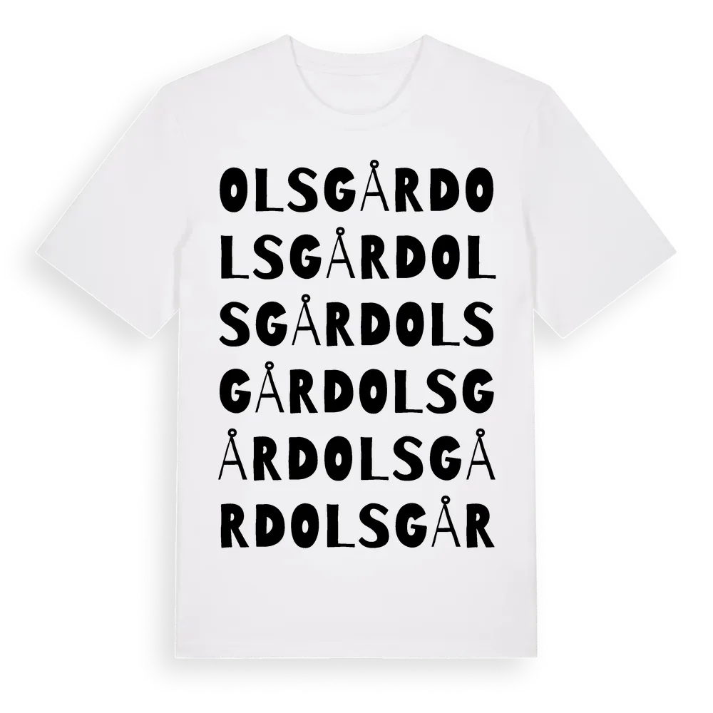 Olsgård ordlek t-shirt är inspirerad av Olsgård i Skåne län, Sverige. Tröjan är designad för dig som har en speciell koppling till platsen – oavsett om du bor här, har rötterna här eller bara älskar Olsgård.
