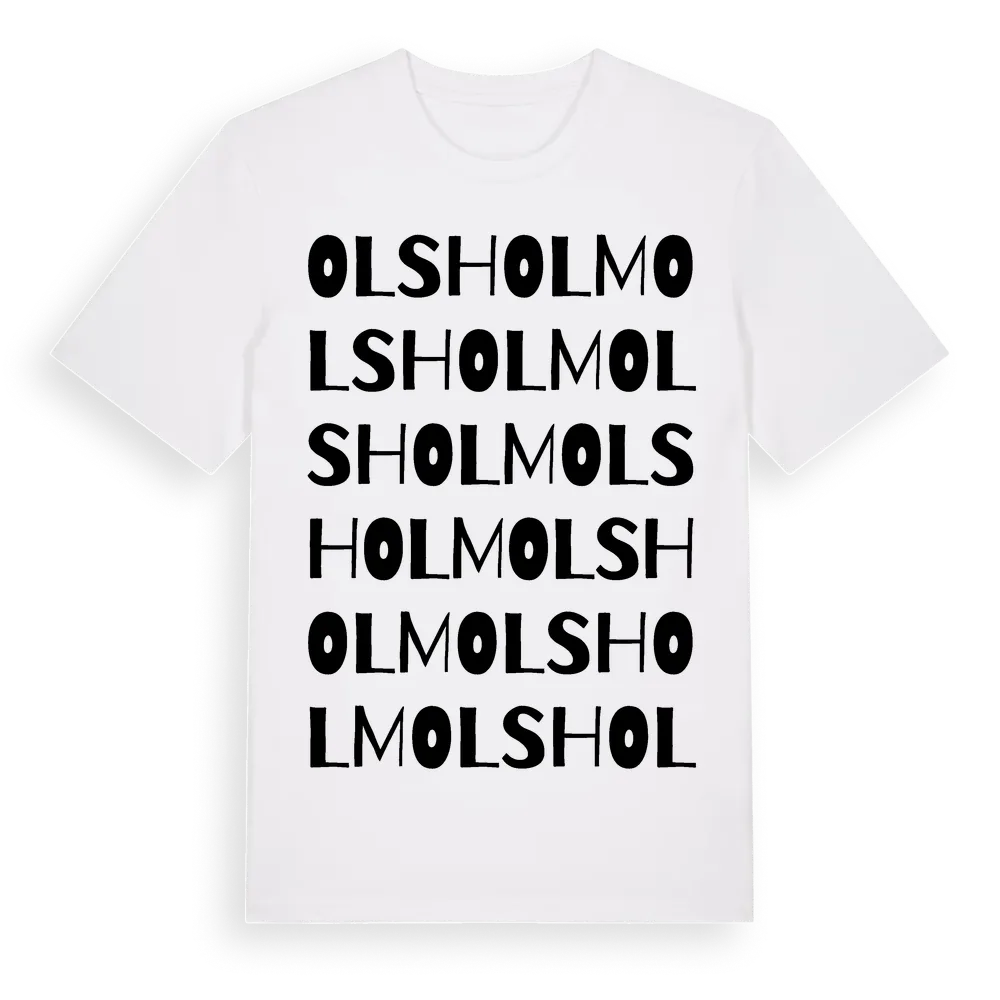 Olsholm ordlek t-shirt är inspirerad av Olsholm i Skåne län, Sverige. Tröjan är designad för dig som har en speciell koppling till platsen – oavsett om du bor här, har rötterna här eller bara älskar Olsholm.