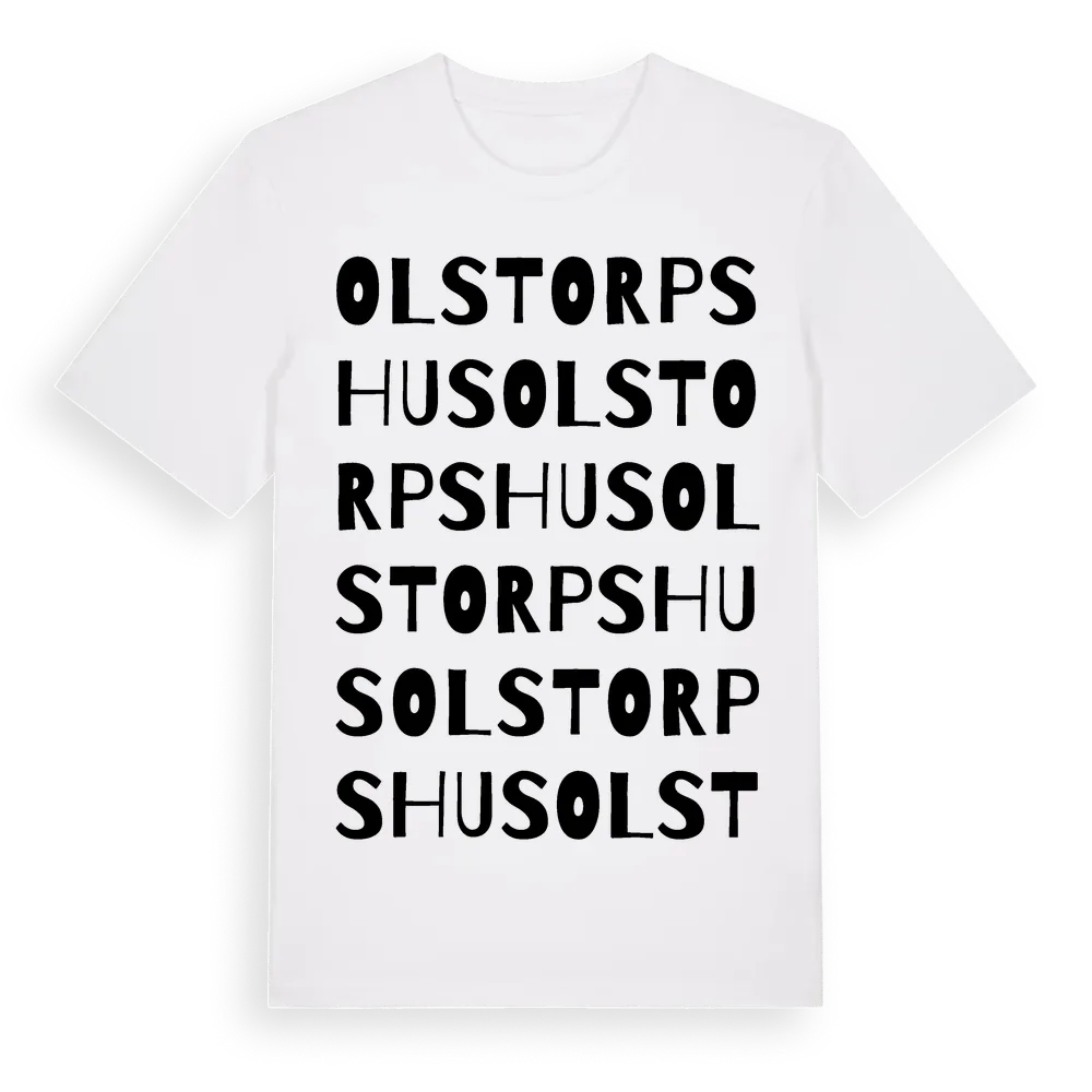 Olstorpshus ordlek t-shirt är inspirerad av Olstorpshus i Skåne län, Sverige. Tröjan är designad för dig som har en speciell koppling till platsen – oavsett om du bor här, har rötterna här eller bara älskar Olstorpshus.