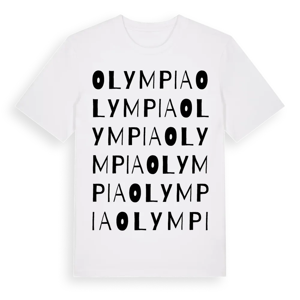 Olympia ordlek t-shirt är inspirerad av stadsdelen Olympia i Skåne län, Sverige. Tröjan är designad för dig som har en speciell koppling till platsen – oavsett om du bor här, har rötterna här eller bara älskar Olympia.