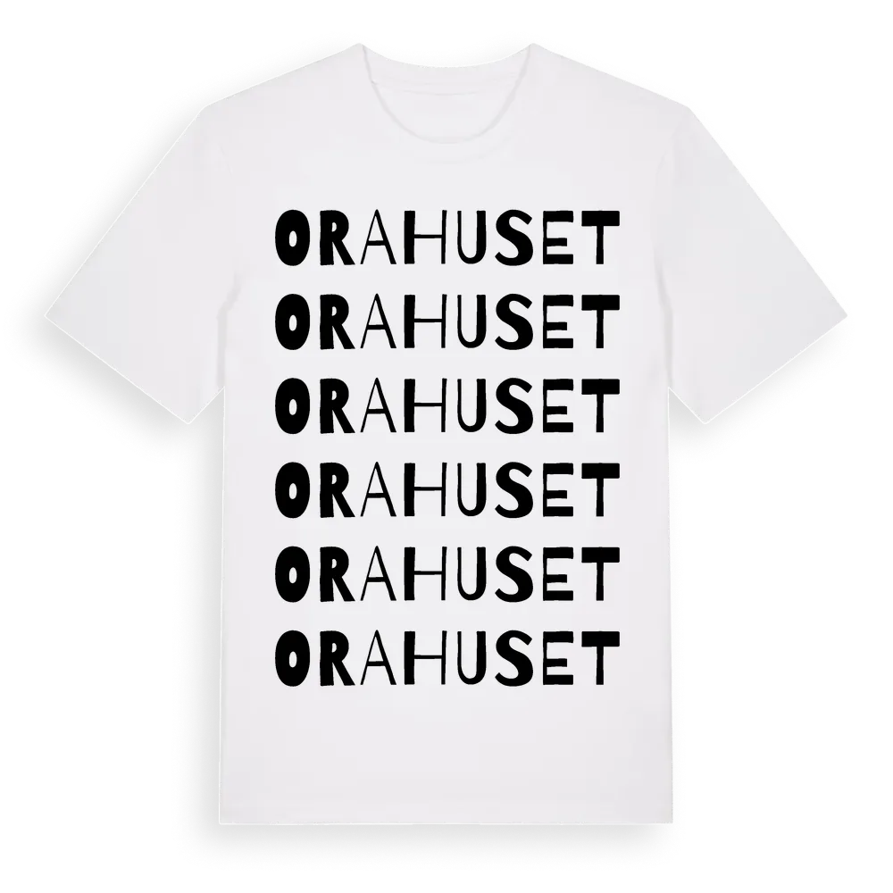 En ordlek byggd på Orahusets namn. Subtilt och klurig – ett motiv som bara de som verkligen känner platsen fullt ut förstår. Premium bomull, unisex – från Orahuset i Skåne län.