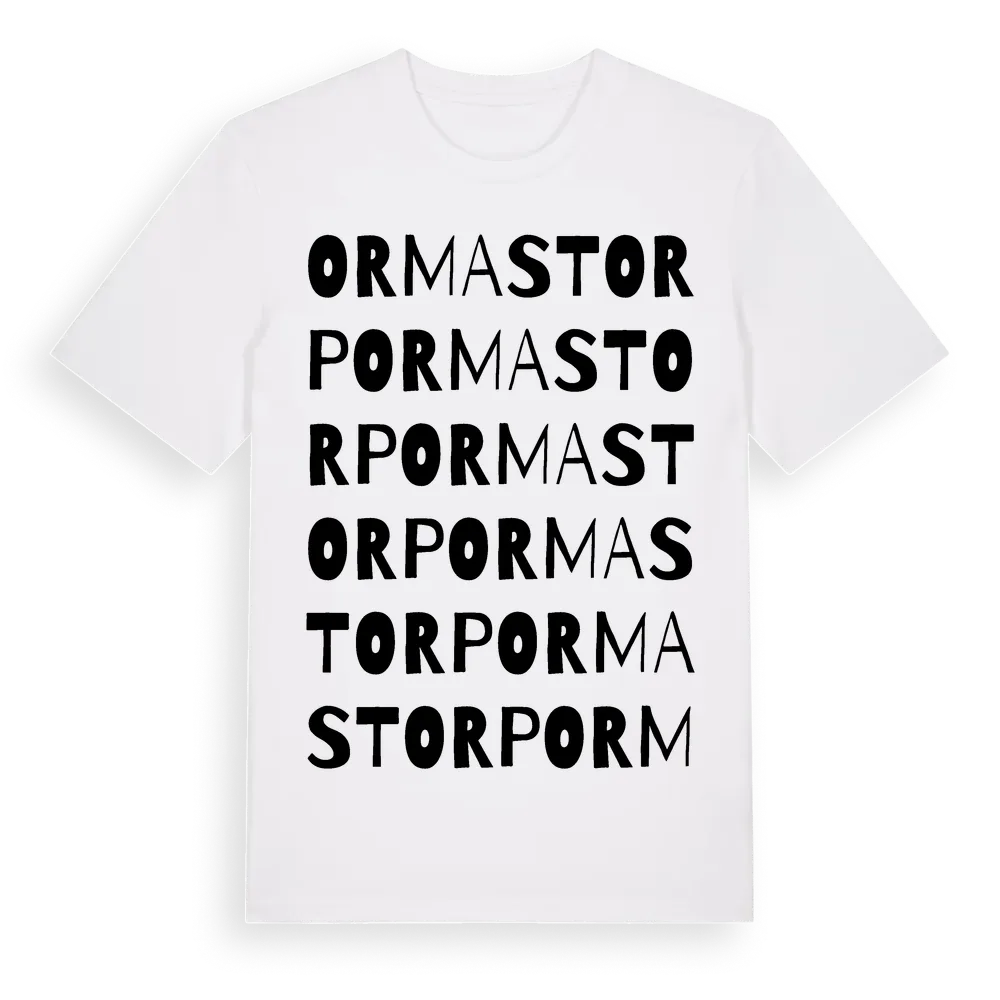 Ormastorp ordlek t-shirt är inspirerad av byn Ormastorp i Skåne län, Sverige. Tröjan är designad för dig som har en speciell koppling till platsen – oavsett om du bor här, har rötterna här eller bara älskar Ormastorp.