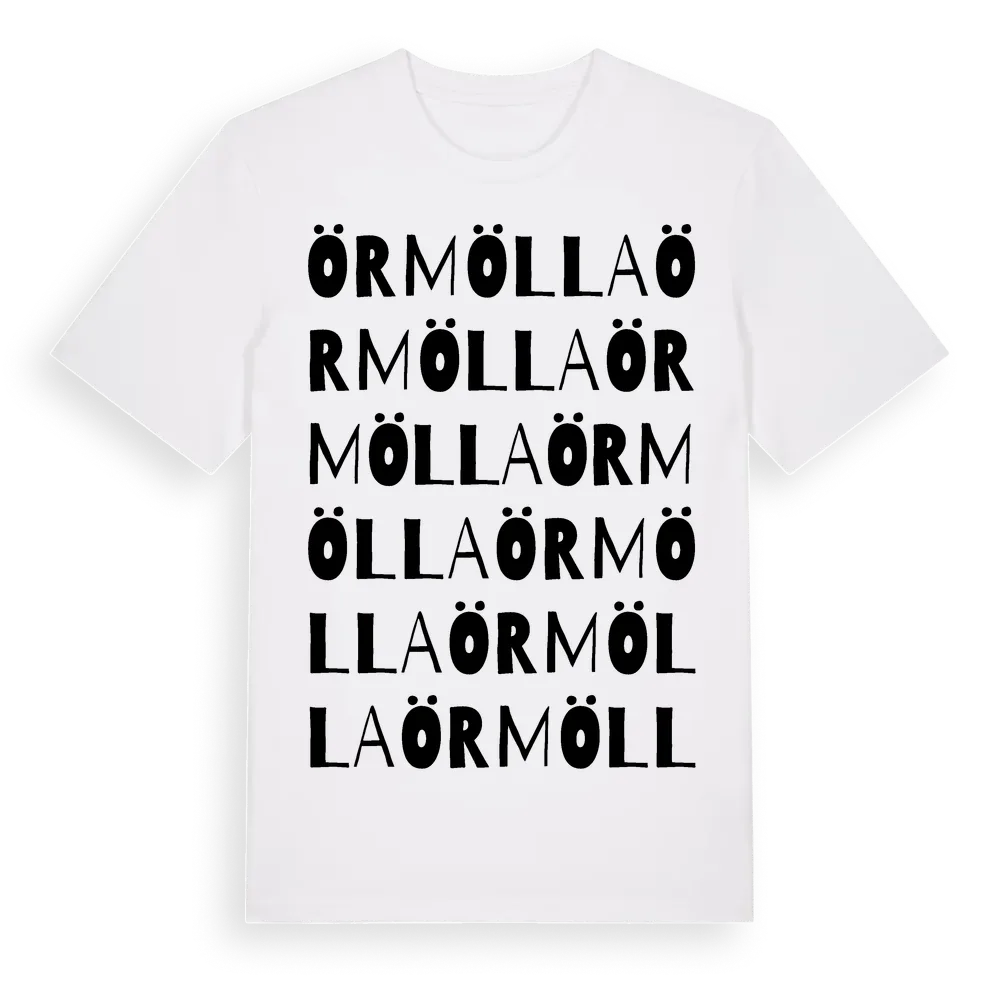 Örmölla ordlek t-shirt är inspirerad av byn Örmölla i Skåne län, Sverige. Tröjan är designad för dig som har en speciell koppling till platsen – oavsett om du bor här, har rötterna här eller bara älskar Örmölla.