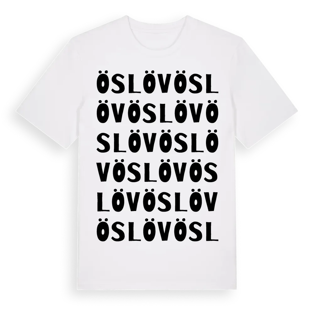 Öslöv ordlek t-shirt är inspirerad av byn Öslöv i Skåne län, Sverige. Tröjan är designad för dig som har en speciell koppling till platsen – oavsett om du bor här, har rötterna här eller bara älskar Öslöv.