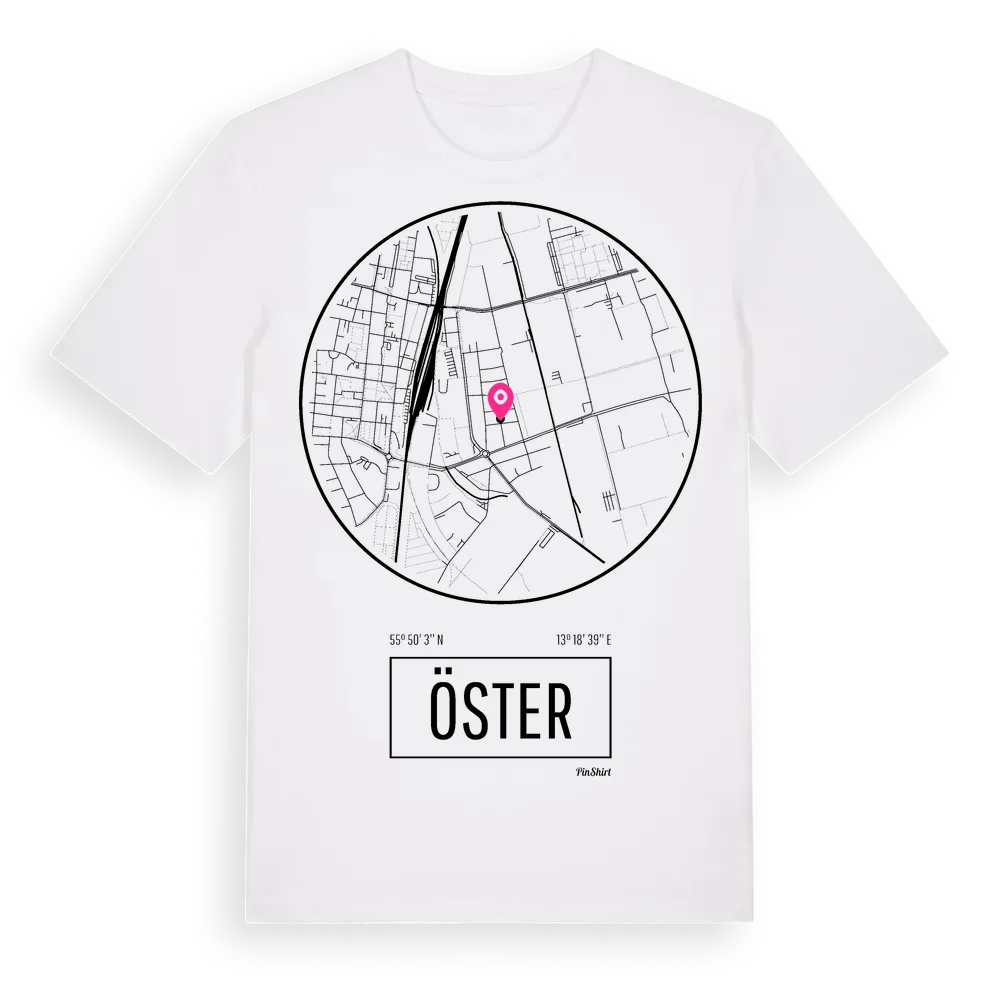 Öster t-shirt är inspirerad av stadsdelen Öster i Skåne län, Sverige. Tröjan är designad för dig som har en speciell koppling till platsen – oavsett om du bor här, har rötterna här eller bara älskar Öster.