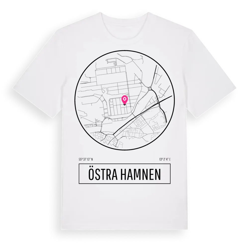 Östra Hamnen t-shirt är inspirerad av Östra Hamnen i Skåne län, Sverige. Tröjan är designad för dig som har en speciell koppling till platsen – oavsett om du bor här, har rötterna här eller bara älskar Östra Hamnen.