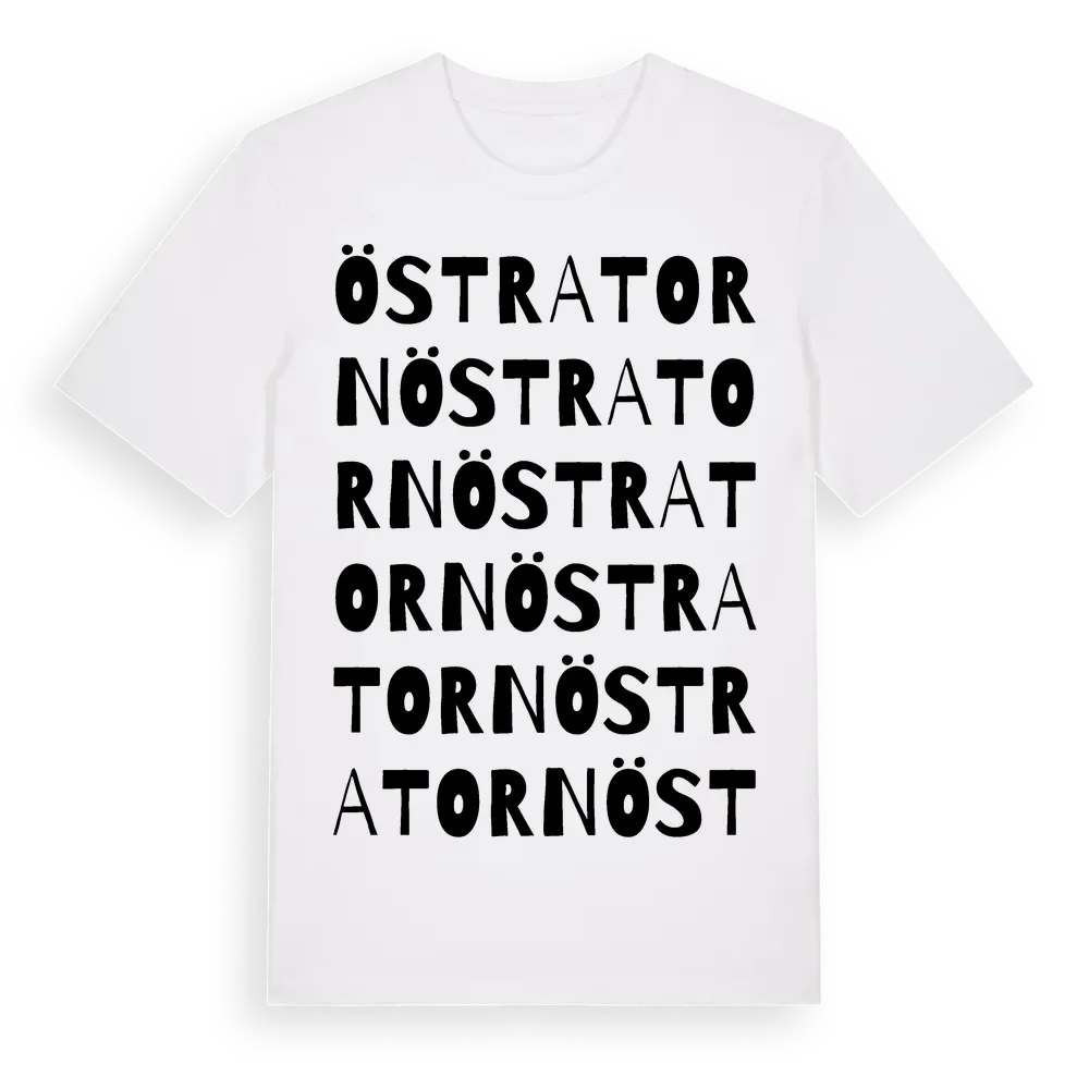 Östra Torn ordlek t-shirt är inspirerad av stadsdelen Östra Torn i Skåne län, Sverige. Tröjan är designad för dig som har en speciell koppling till platsen – oavsett om du bor här, har rötterna här eller bara älskar Östra Torn.