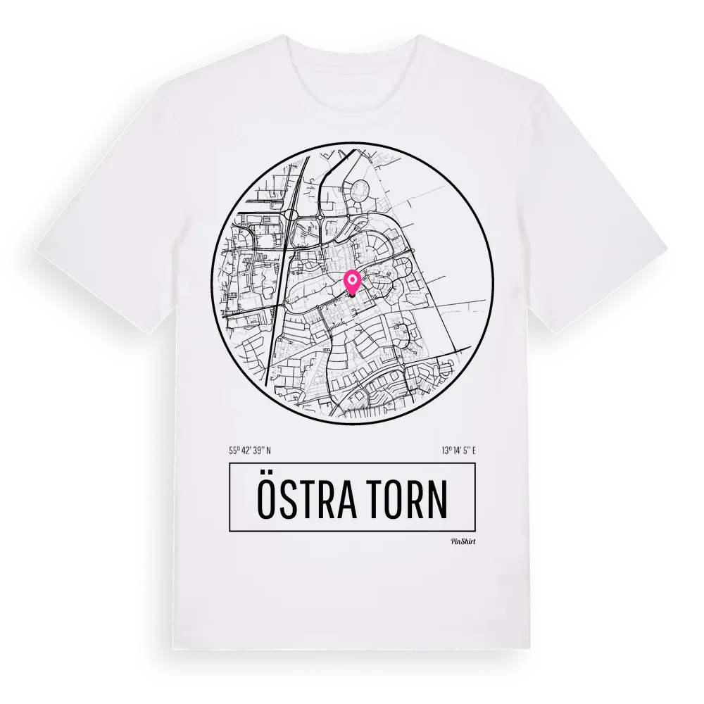 Ett rent, runt tryck med Östra Torns namn. Minimalistiskt och stilrent – perfekt för den som känner platsen utan att skrika det. Premium bomull, unisex – från stadsdelen Östra Torn i Skåne län.
