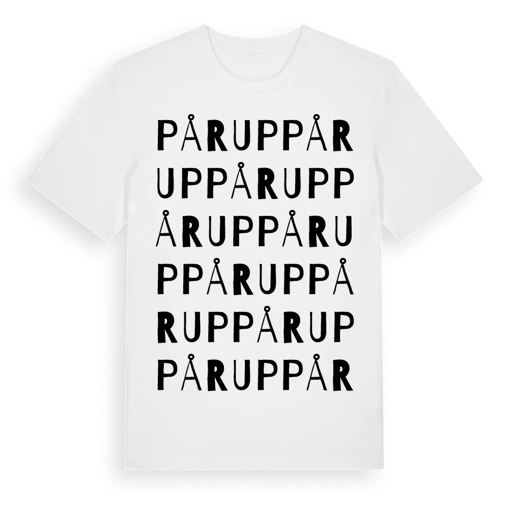 Pårup ordlek t-shirt är inspirerad av byn Pårup i Skåne län, Sverige. Tröjan är designad för dig som har en speciell koppling till platsen – oavsett om du bor här, har rötterna här eller bara älskar Pårup.