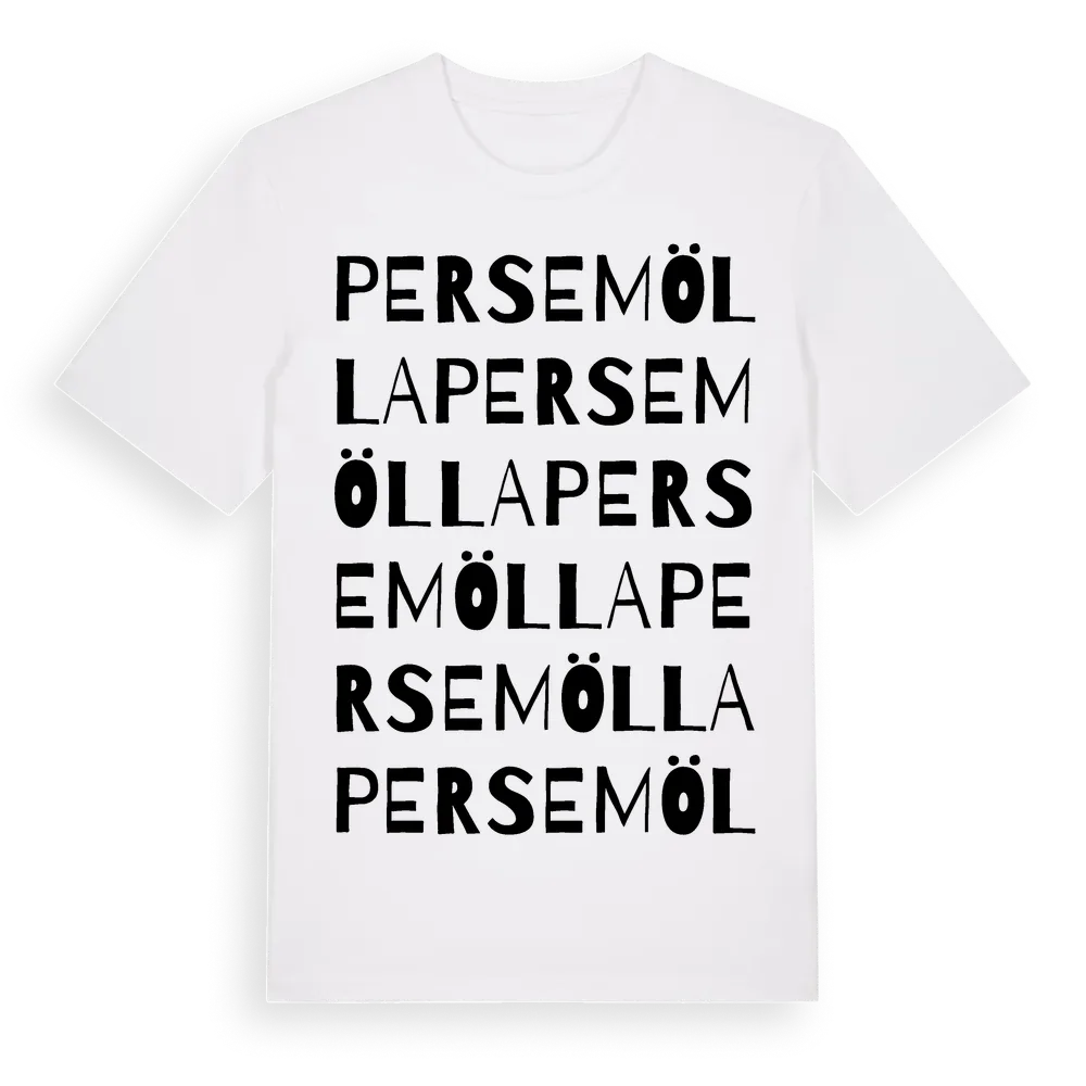 En ordlek byggd på Persemöllas namn. Subtilt och klurig – ett motiv som bara de som verkligen känner platsen fullt ut förstår. Premium bomull, unisex – från Persemölla i Skåne län.