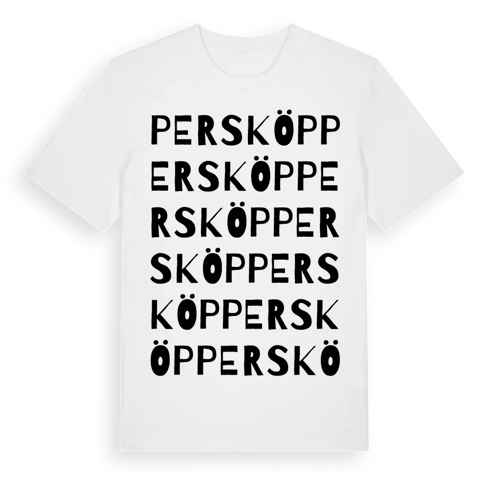 Persköp ordlek t-shirt är inspirerad av Persköp i Skåne län, Sverige. Tröjan är designad för dig som har en speciell koppling till platsen – oavsett om du bor här, har rötterna här eller bara älskar Persköp.
