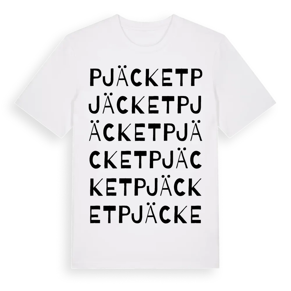 Pjäcket ordlek t-shirt är inspirerad av byn Pjäcket i Skåne län, Sverige. Tröjan är designad för dig som har en speciell koppling till platsen – oavsett om du bor här, har rötterna här eller bara älskar Pjäcket.