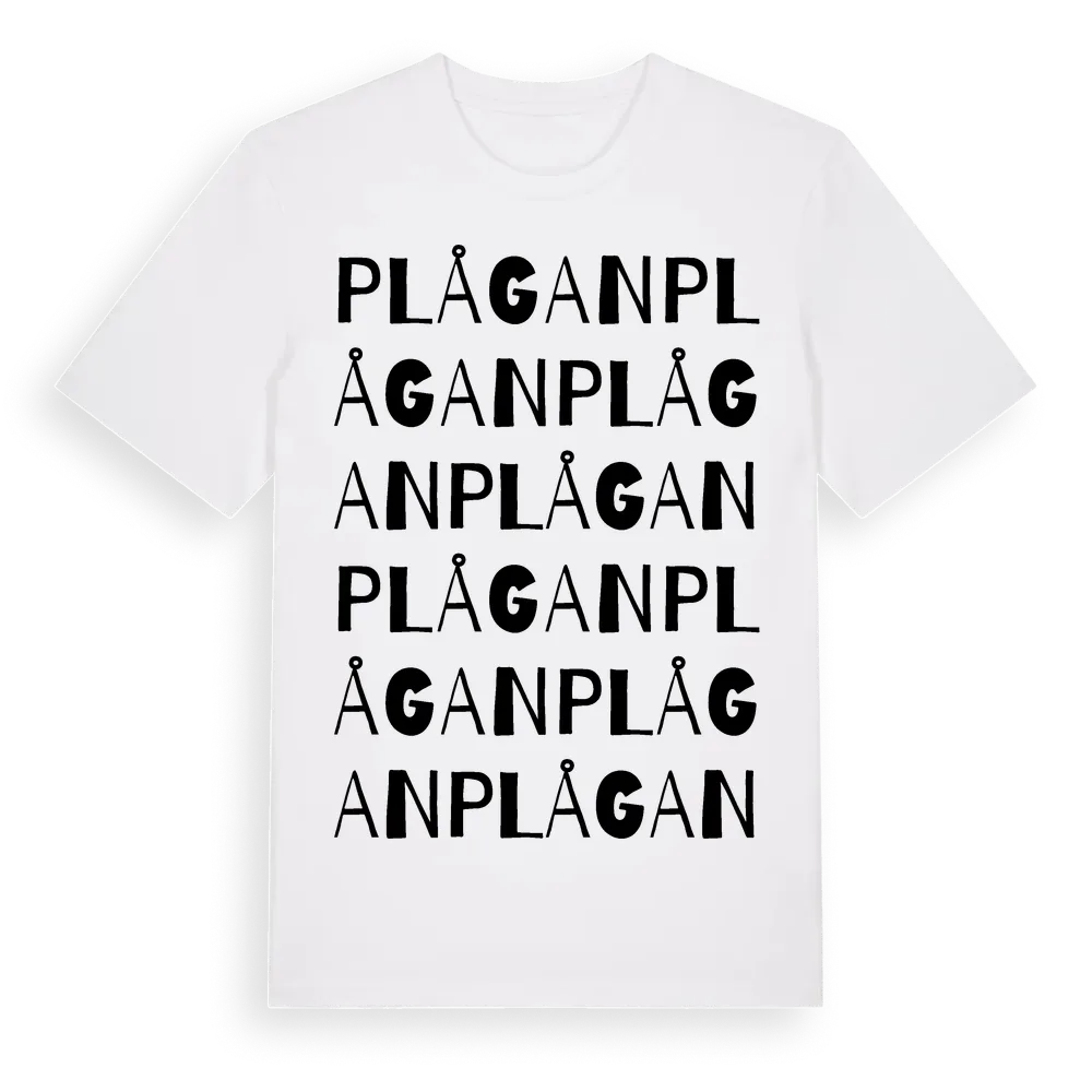 Plågan ordlek t-shirt är inspirerad av Plågan i Skåne län, Sverige. Tröjan är designad för dig som har en speciell koppling till platsen – oavsett om du bor här, har rötterna här eller bara älskar Plågan.