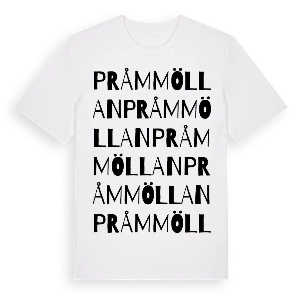 Pråmmöllan ordlek t-shirt är inspirerad av Pråmmöllan i Skåne län, Sverige. Tröjan är designad för dig som har en speciell koppling till platsen – oavsett om du bor här, har rötterna här eller bara älskar Pråmmöllan.