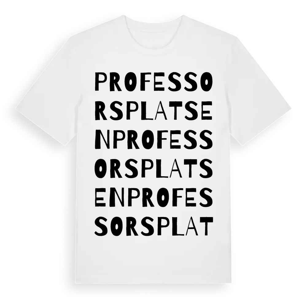 En ordlek byggd på Professorsplatsens namn. Subtilt och klurig – ett motiv som bara de som verkligen känner platsen fullt ut förstår. Premium bomull, unisex – från Professorsplatsen i Skåne län.