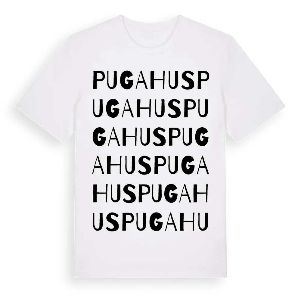 Pugahus ordlek t-shirt är inspirerad av Pugahus i Skåne län, Sverige. Tröjan är designad för dig som har en speciell koppling till platsen – oavsett om du bor här, har rötterna här eller bara älskar Pugahus.